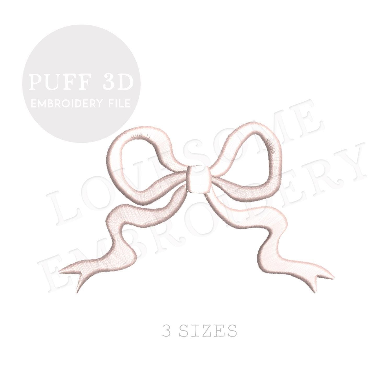 Stylish Bow Puff Stitch Three Big Sizes Machine Embroidery Design, Puff 3D Bow Multiple Size Embroidery Digital File | Lovesome Design