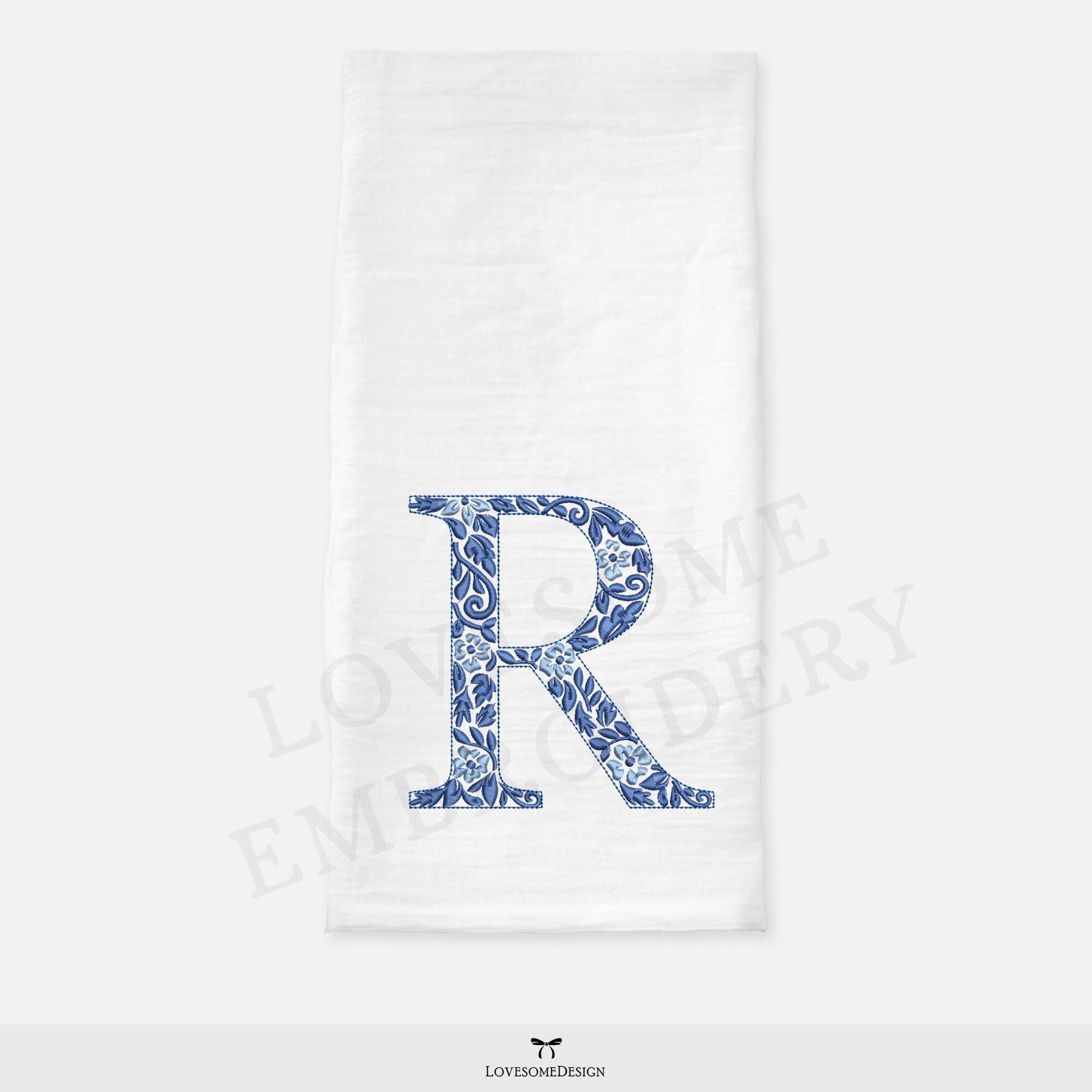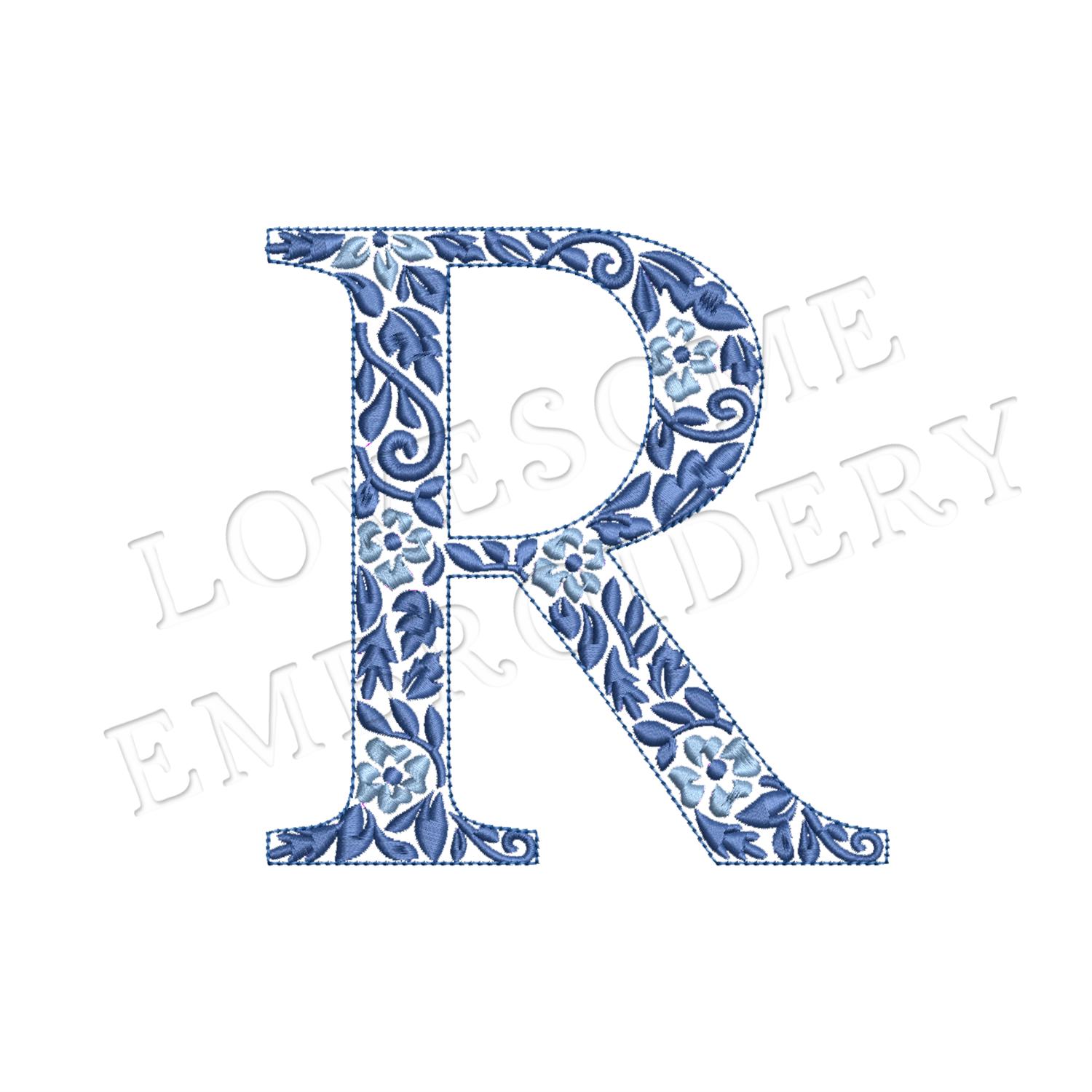 NEW Chinoiserie Letter R 4inch Machine Embroidery Font Blue Elegant Monogram Letters Digital Download | Lovesome Design
