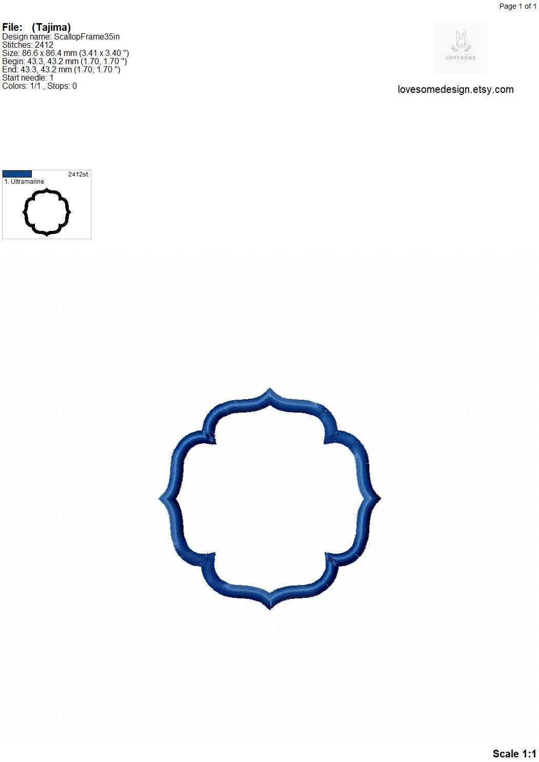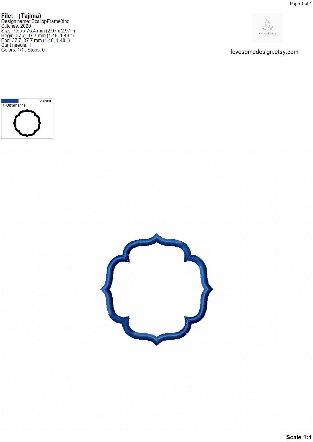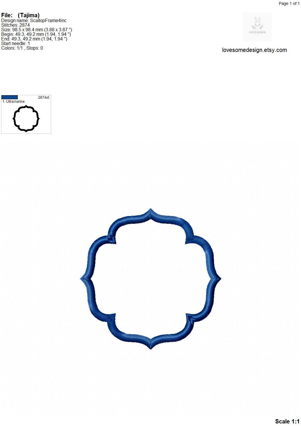 Ornate Frame Embroidery Design Multisize, Napkin Scallop Frame Machine Embroidery Digital File | Lovesome Design