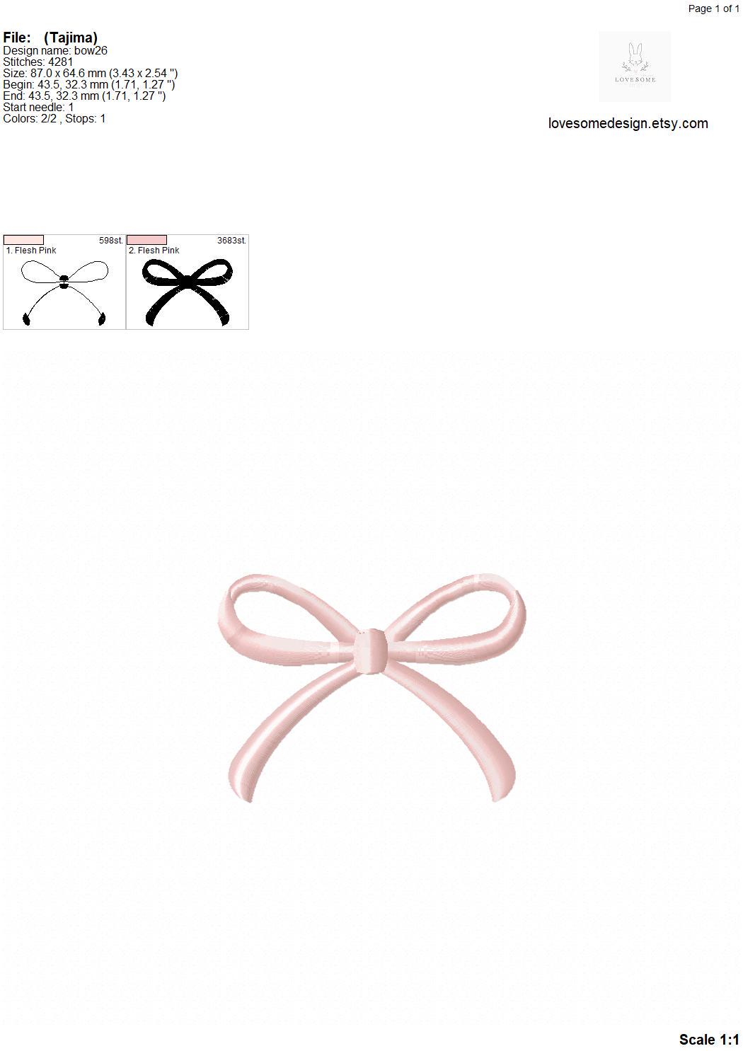 Simple Bow Puff 3D Three Sizes Embroidery Design, Puff Stitch Cute Ribbon Top Bow Machine Embroidery Digital File | Lovesome Design