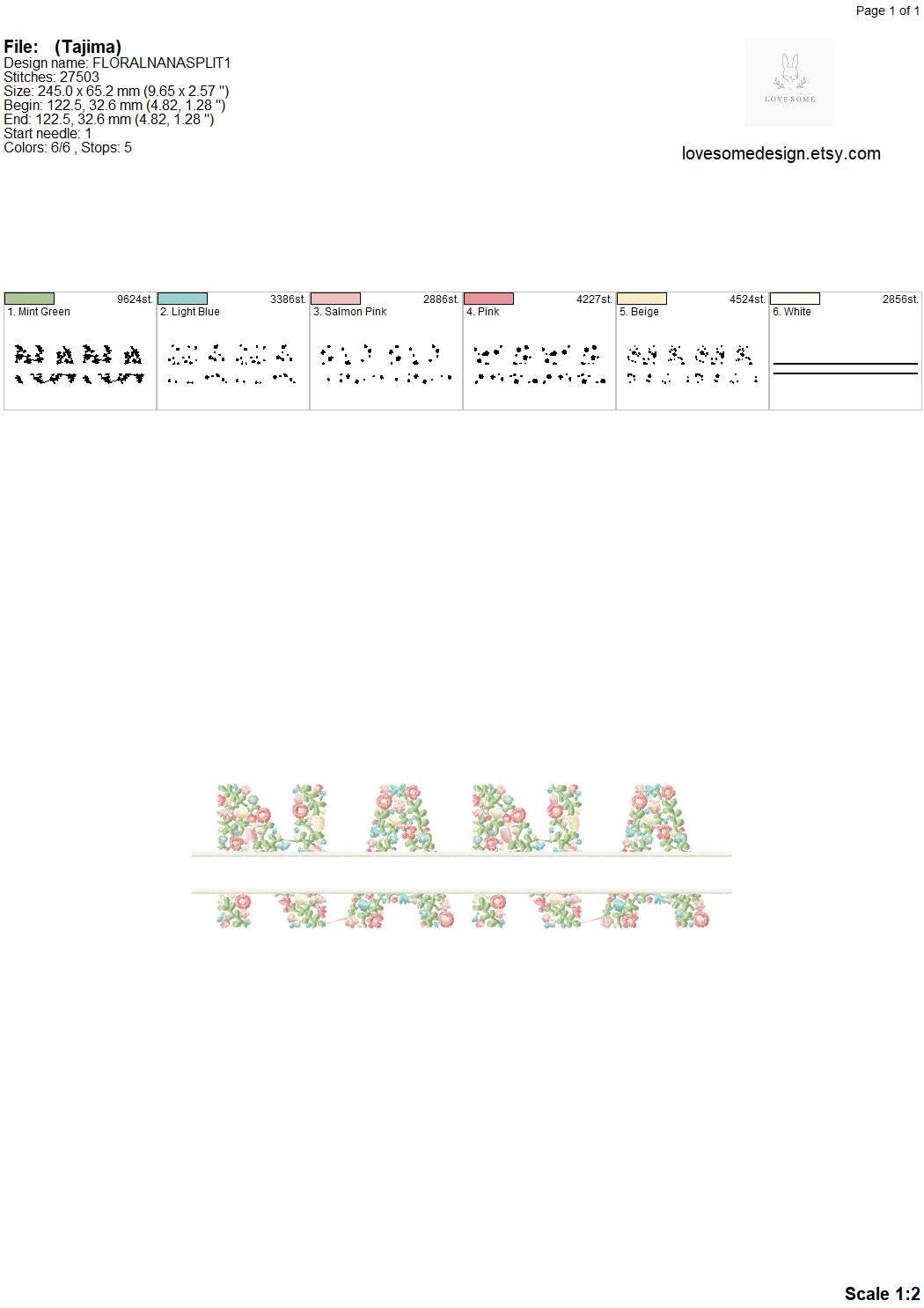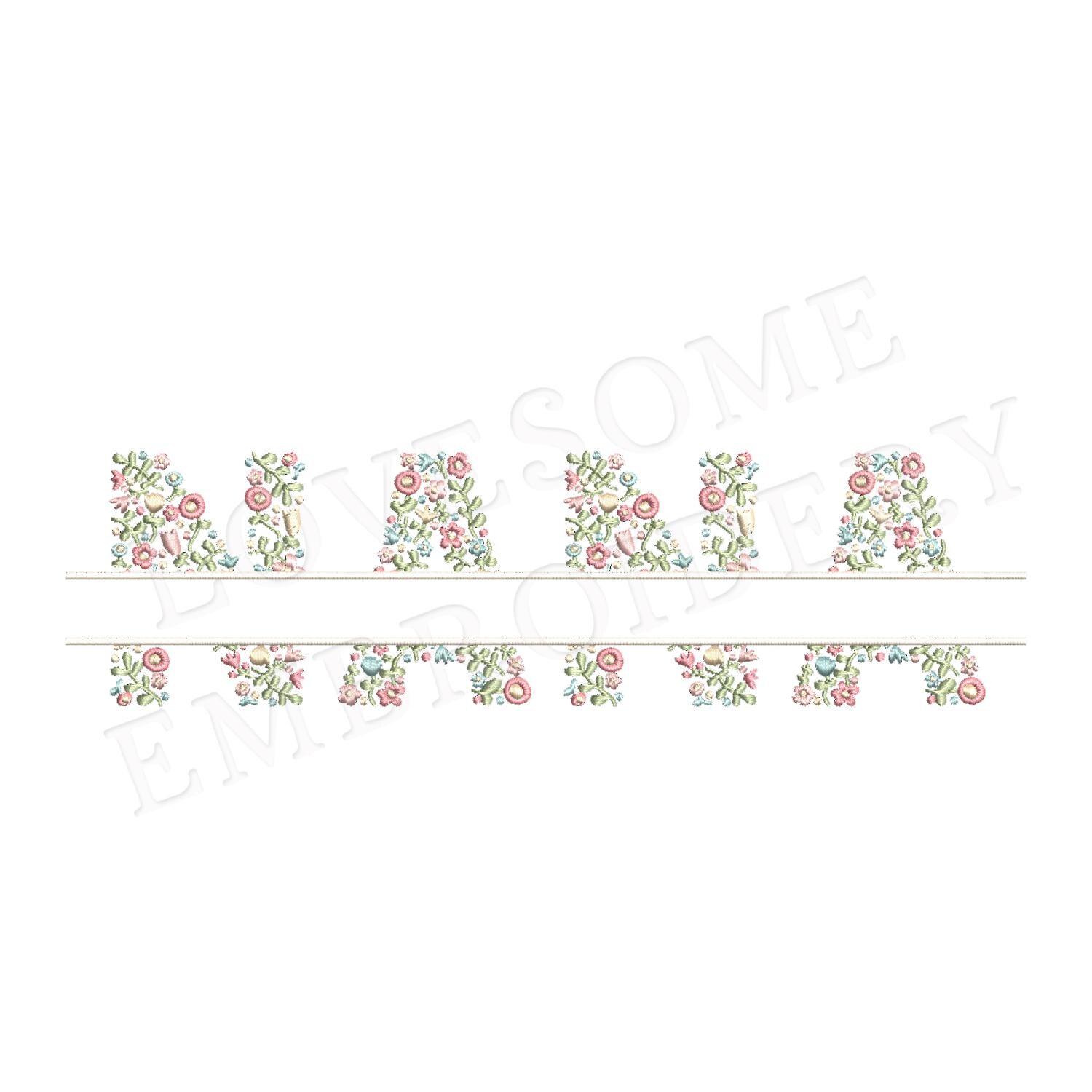 This listing features a machine embroidery file of floral fill split nana lettering in 10 inch size. You can customize by adding the text you wish. It would make a great mothers day gift when stitched with grandkids names in the split area.