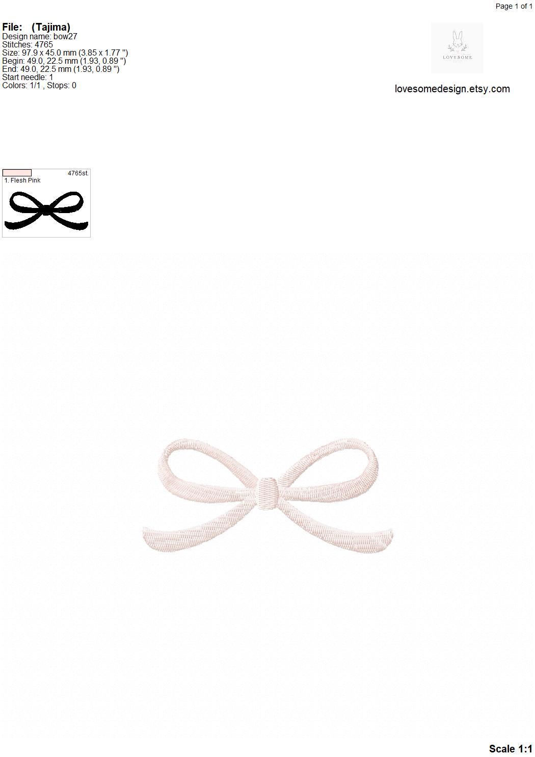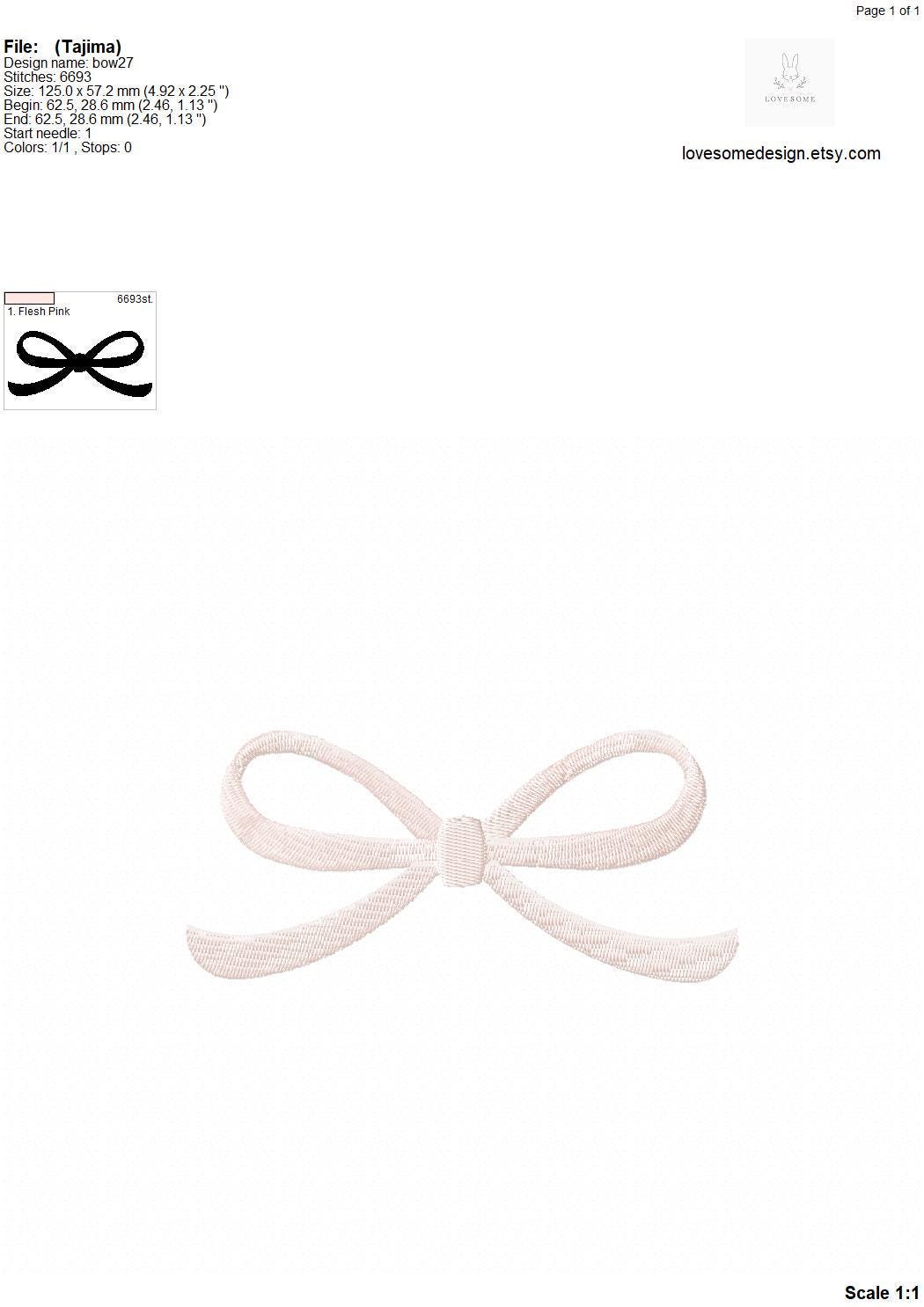 Simple Bow Three Big Sizes Embroidery Design, Stylish Bow Fill Stitch Cute Ribbon Top Bow Machine Embroidery Digital File | Lovesome Design