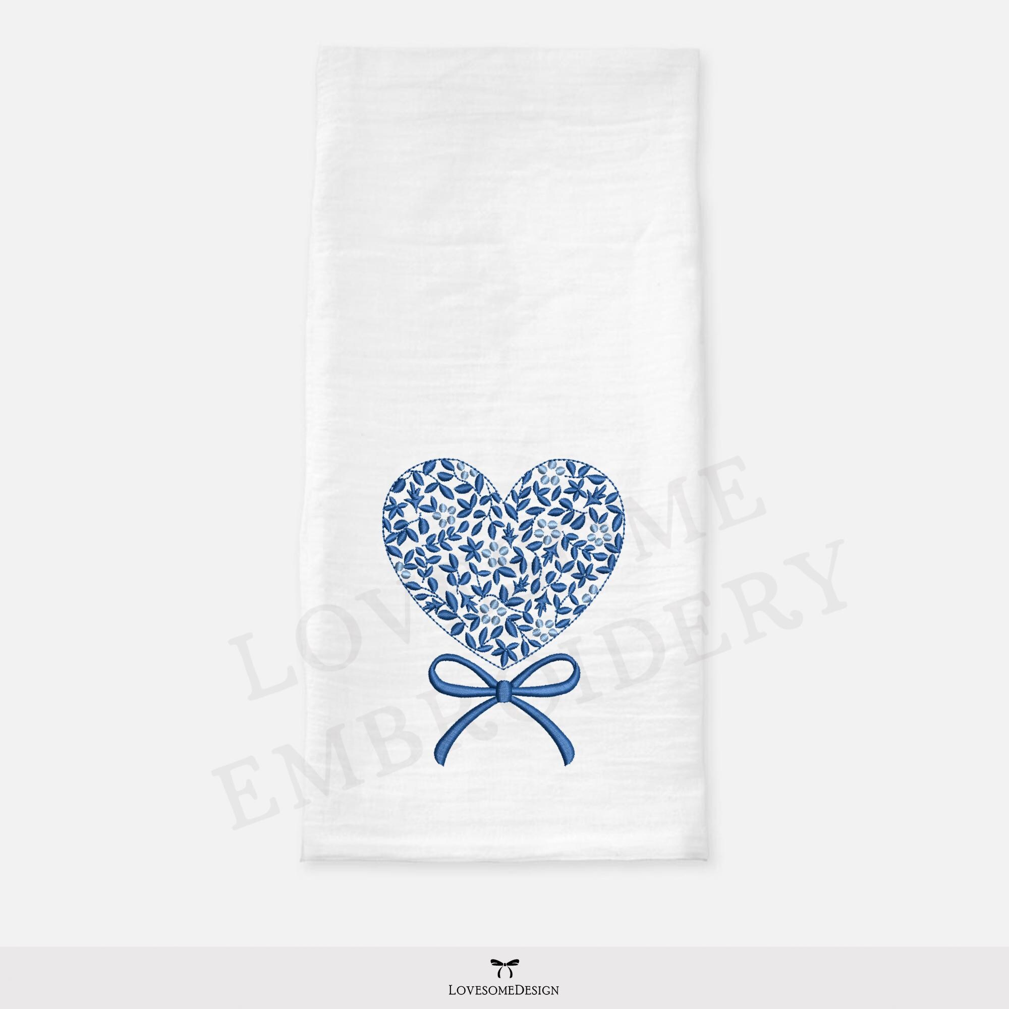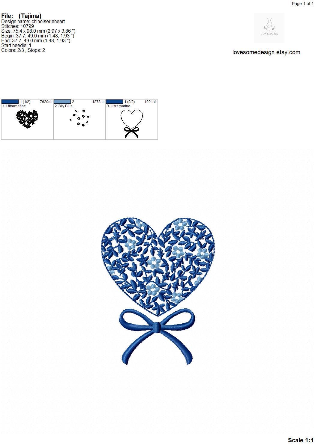This listing features a machine embroidery file of Chinoiserie floral heart with a cute bow in 4 inches size.