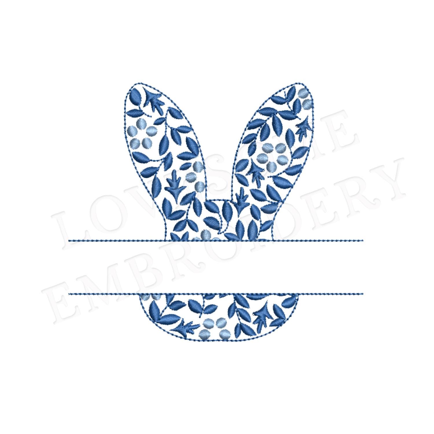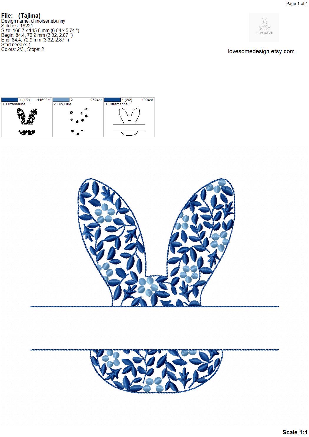 This listing features a machine embroidery file of Chinoiserie floral split bunny in 7 inches size.