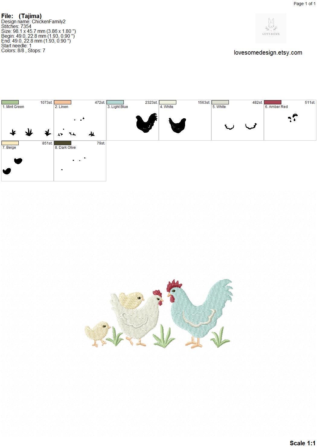 This listing includes one cute chicken family design for machine embroidery in 4inch size.