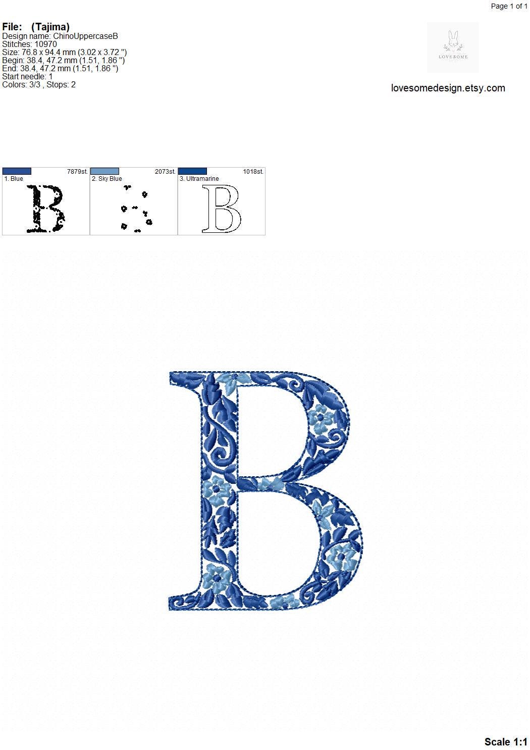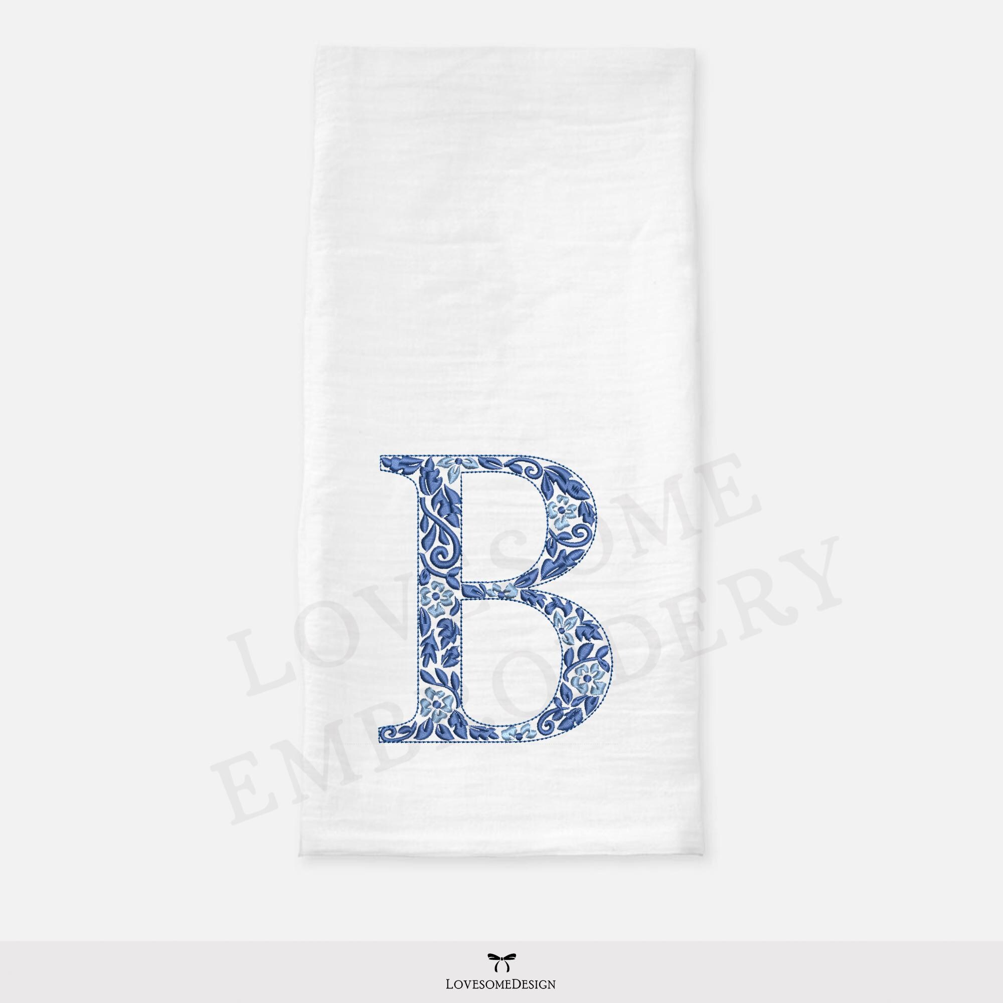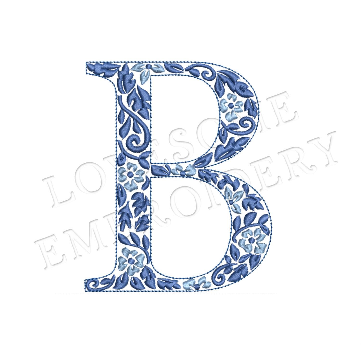 NEW Chinoiserie Letter B 4inch Machine Embroidery Font Blue Elegant Monogram Letters Digital Download | Lovesome Design