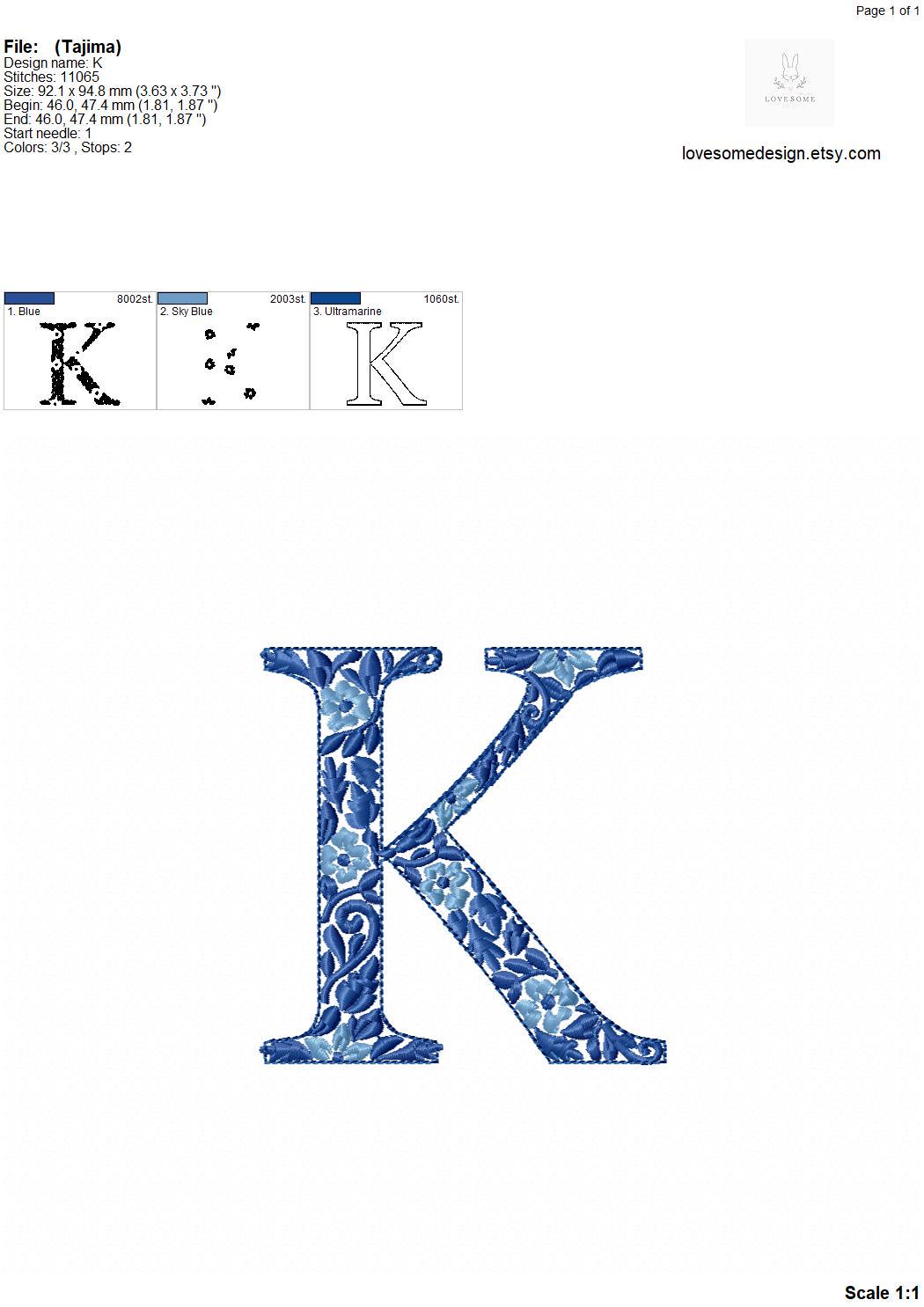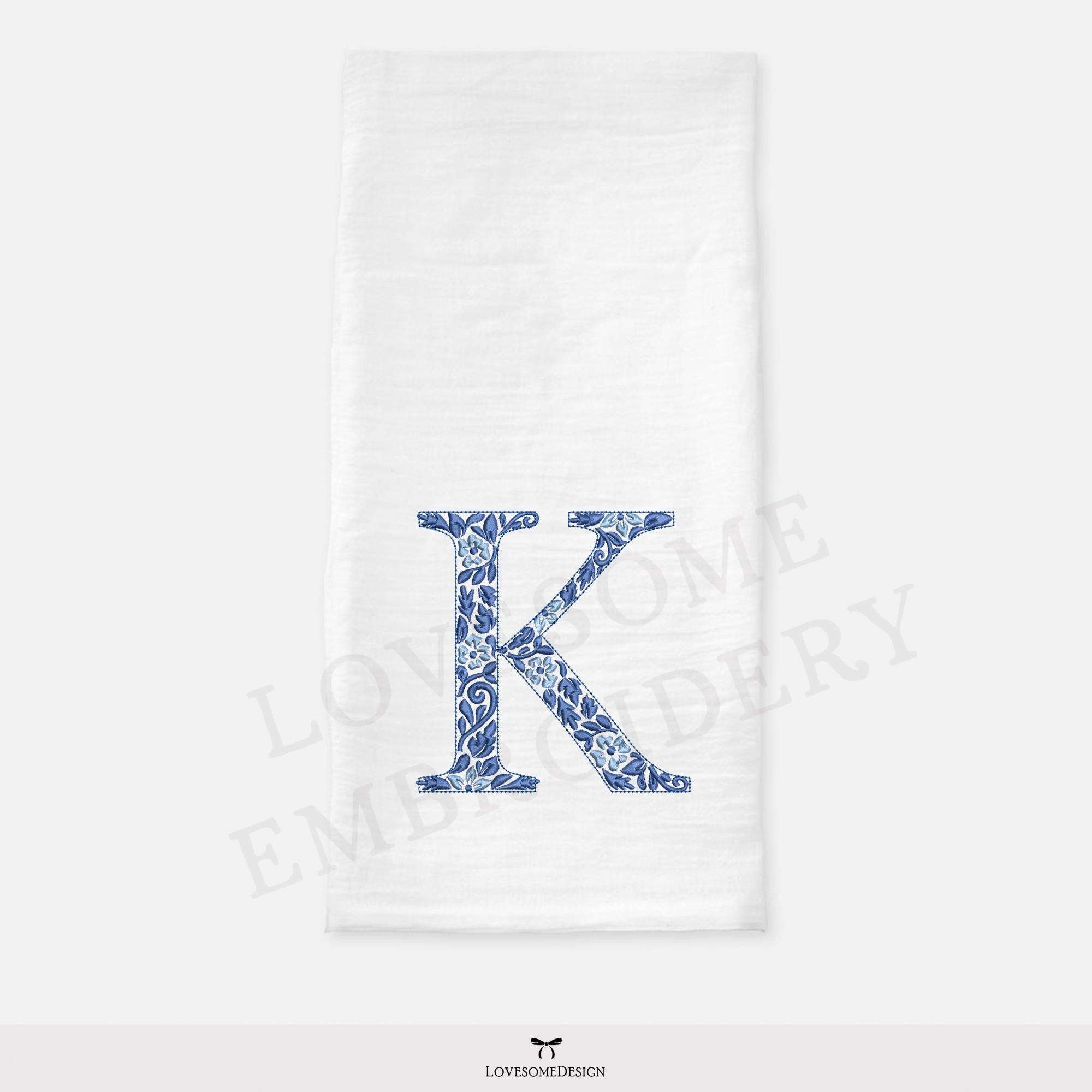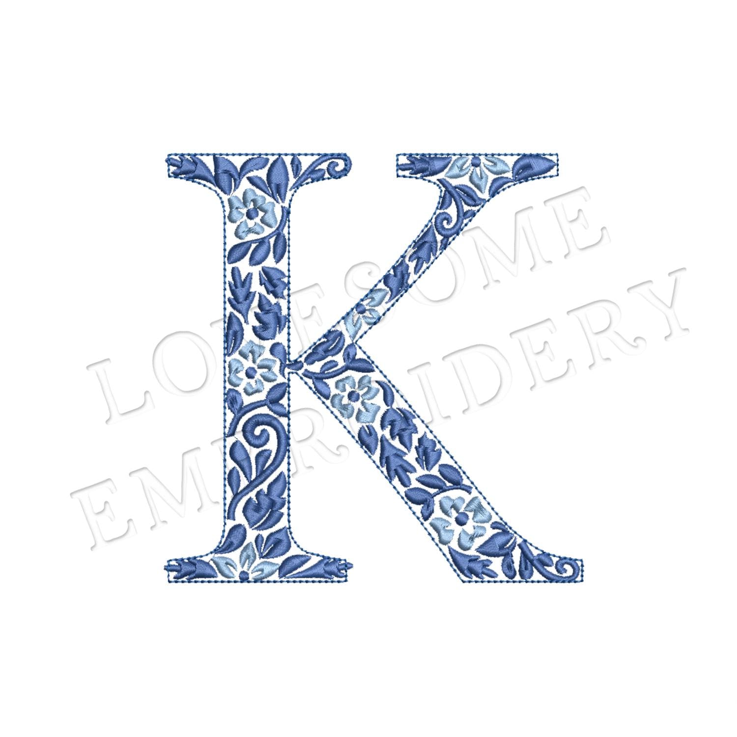 NEW Chinoiserie Letter K 4inch Machine Embroidery Font Blue Elegant Monogram Letters Digital Download | Lovesome Design