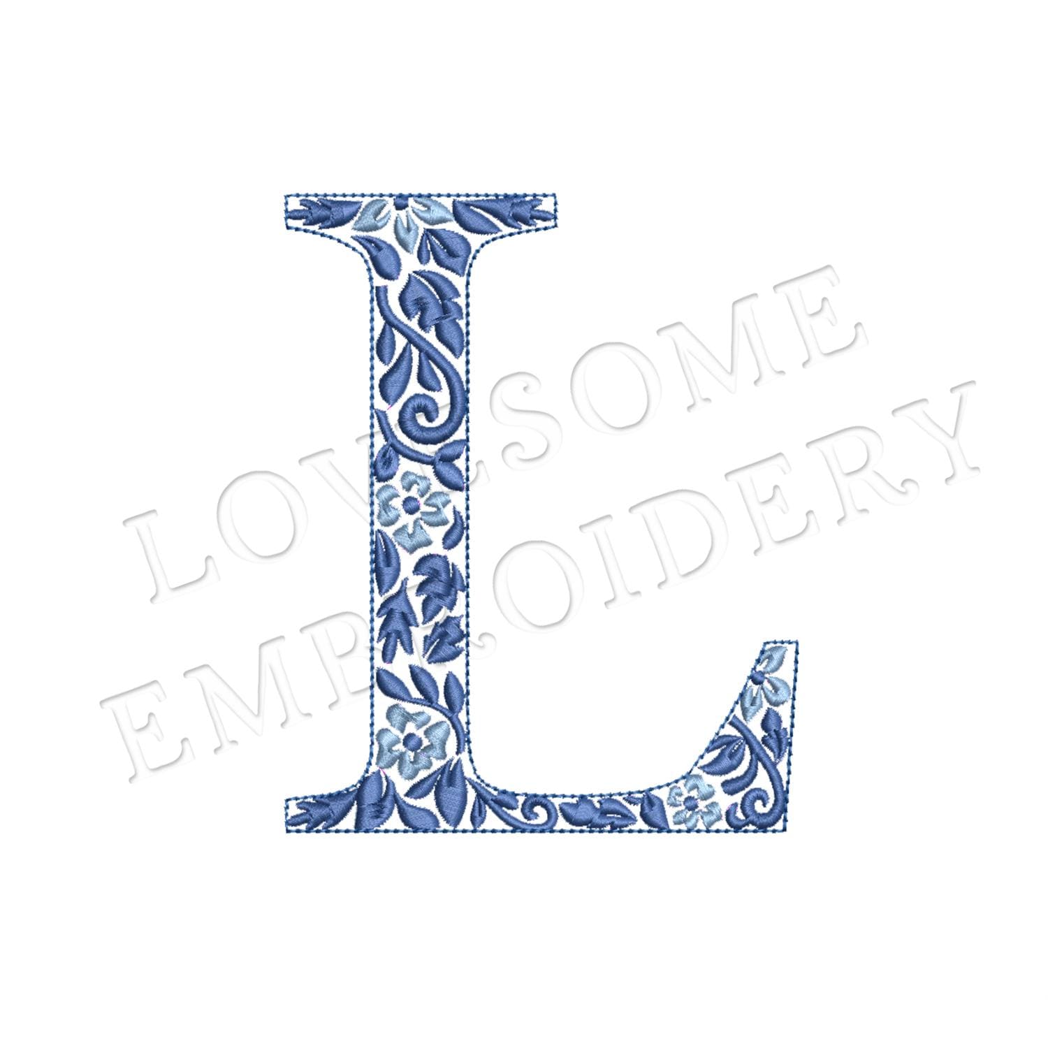 NEW Chinoiserie Letter L 4inch Machine Embroidery Font Blue Elegant Monogram Letters Digital Download | Lovesome Design