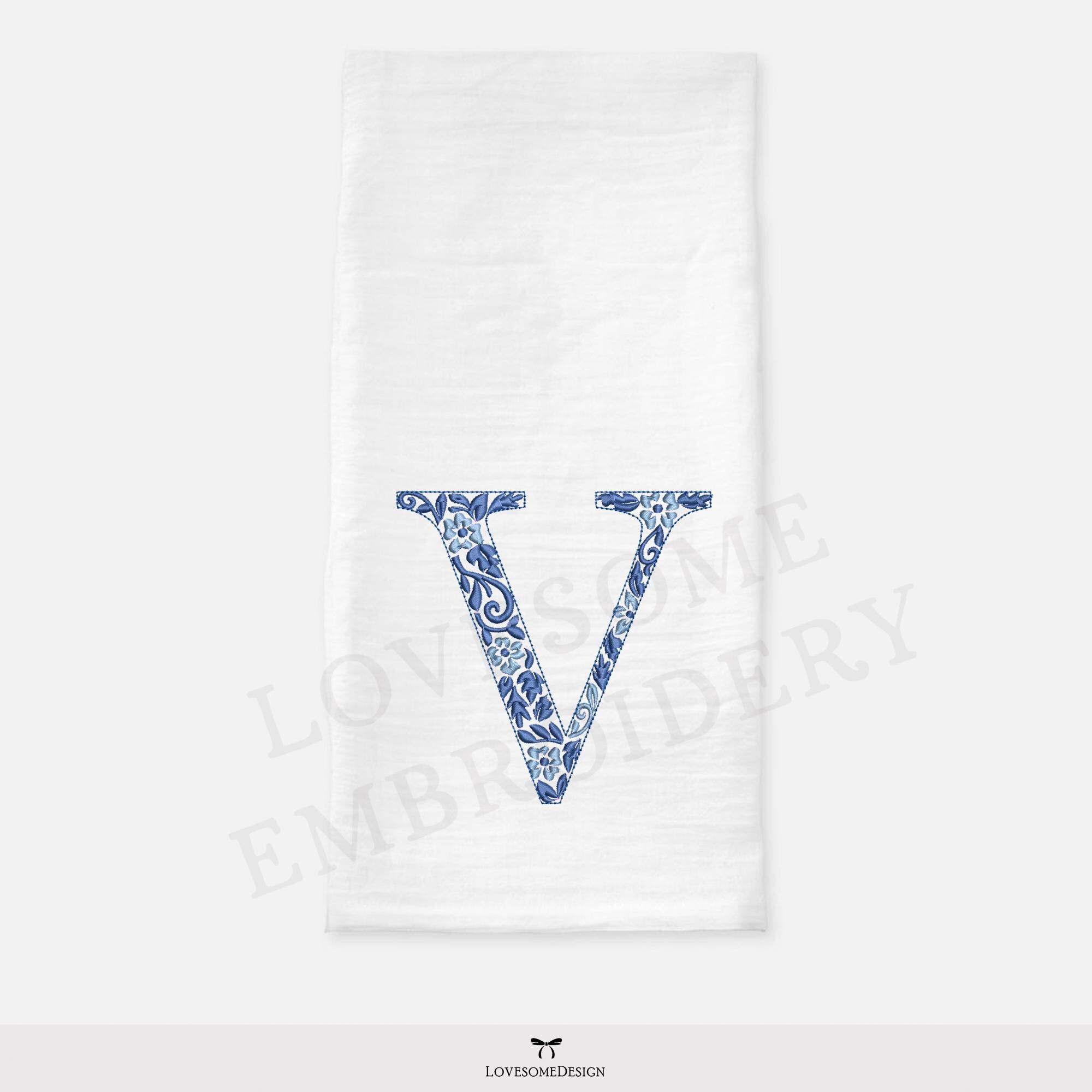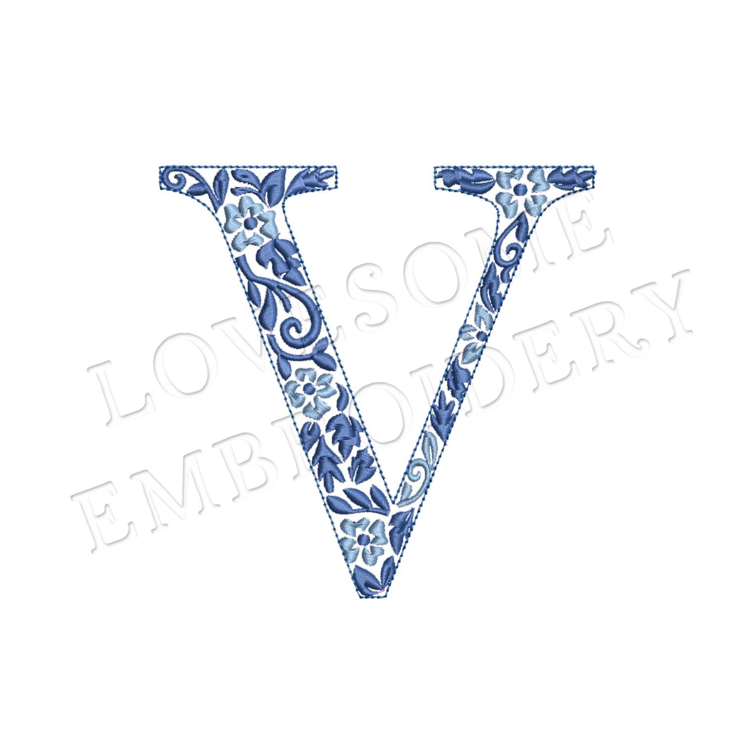 NEW Chinoiserie Letter V 4inch Machine Embroidery Font Blue Elegant Monogram Letters Digital Download | Lovesome Design