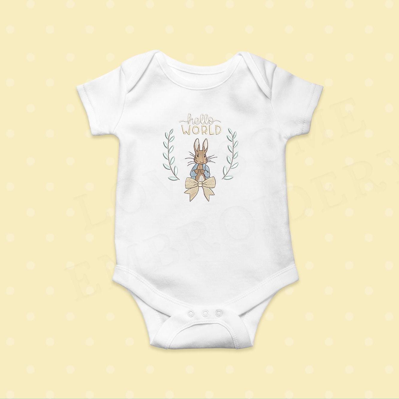 Hello World Bow 3inch Peter Rabbit Machine Embroidery Design Digital Download | Lovesome Design