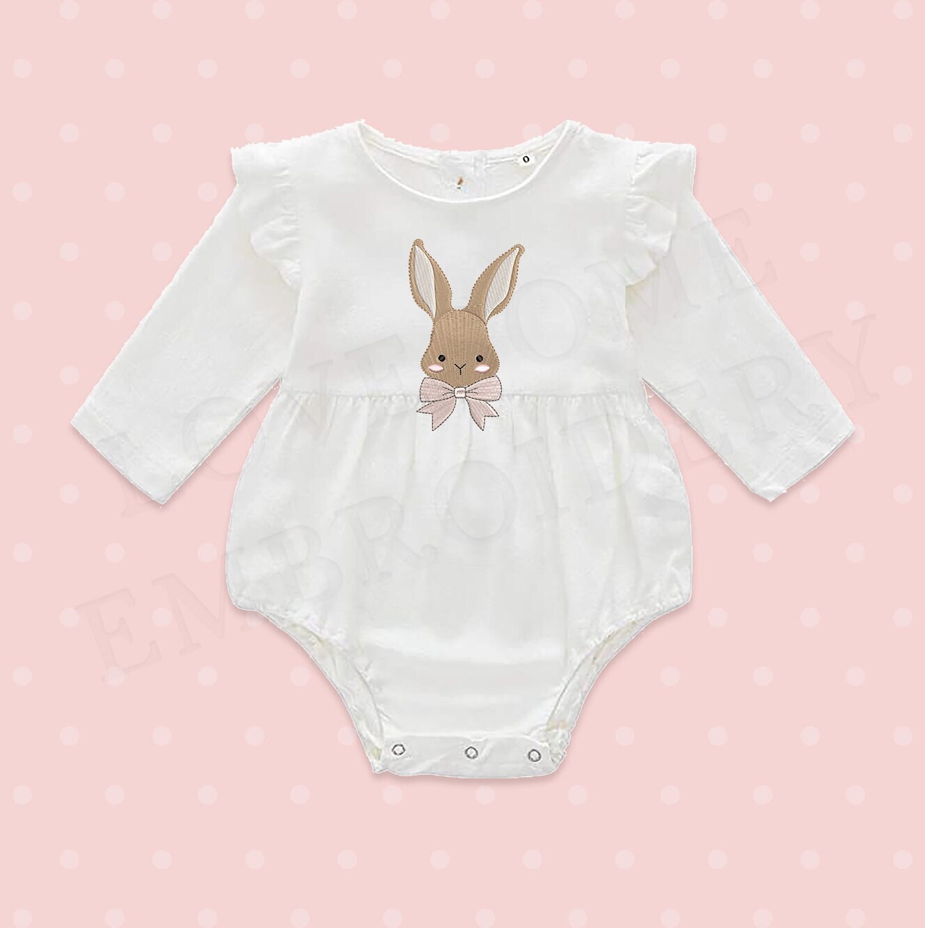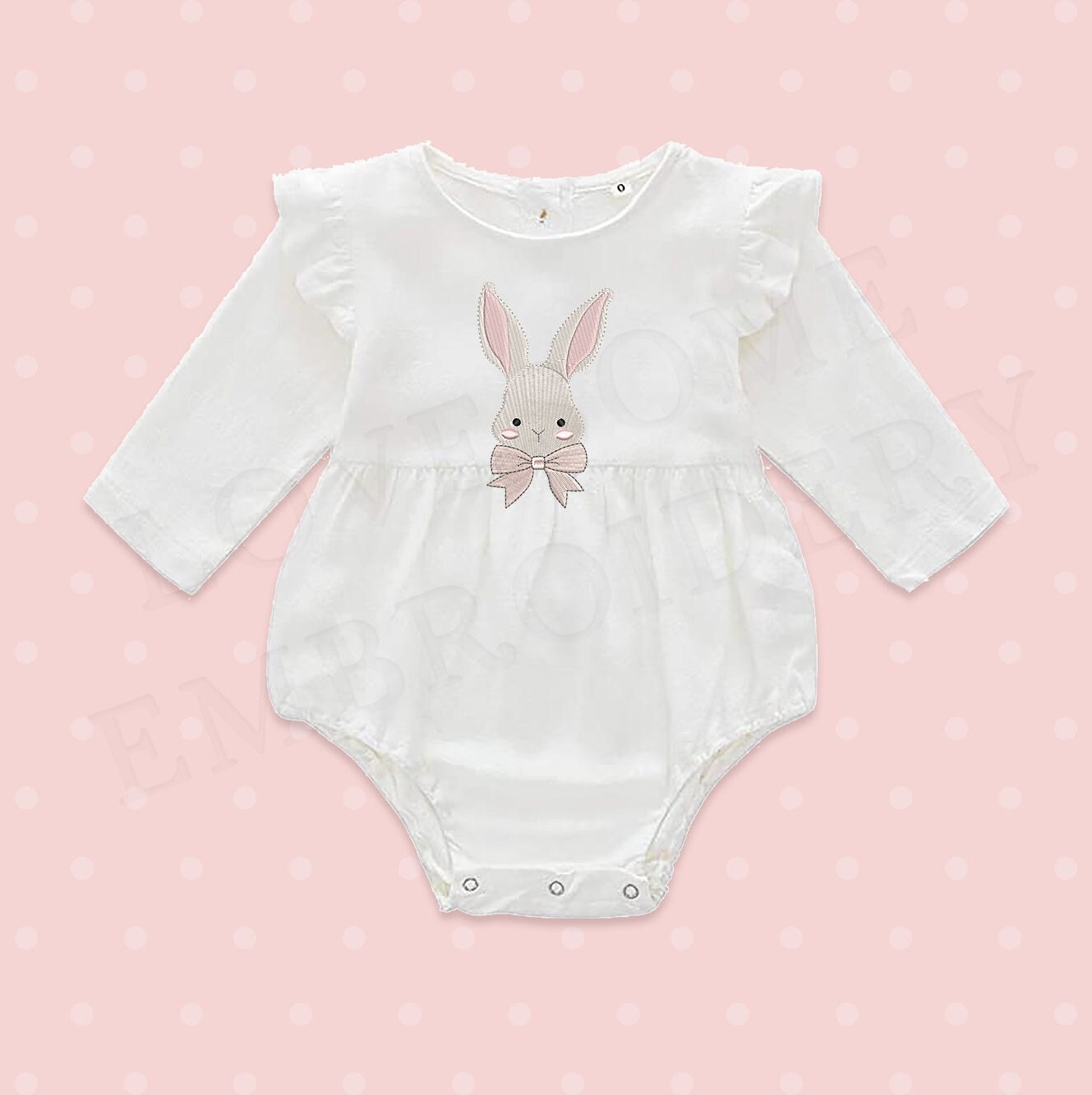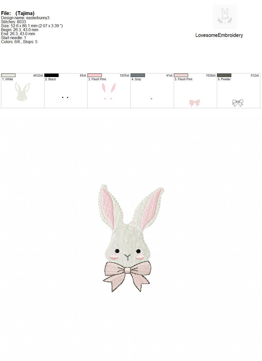 This listing features a machine embroidery file of an adorable little bunny with a bow in 3.5inch size. Designed with love for the birthday of the little one.