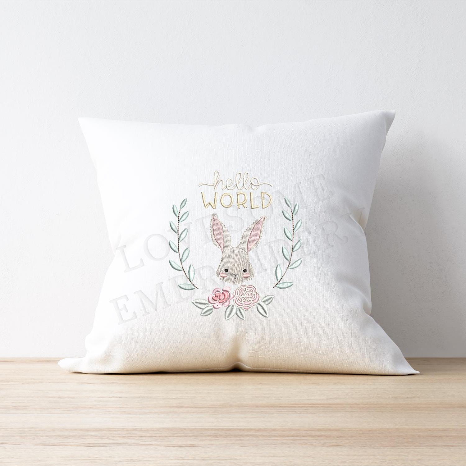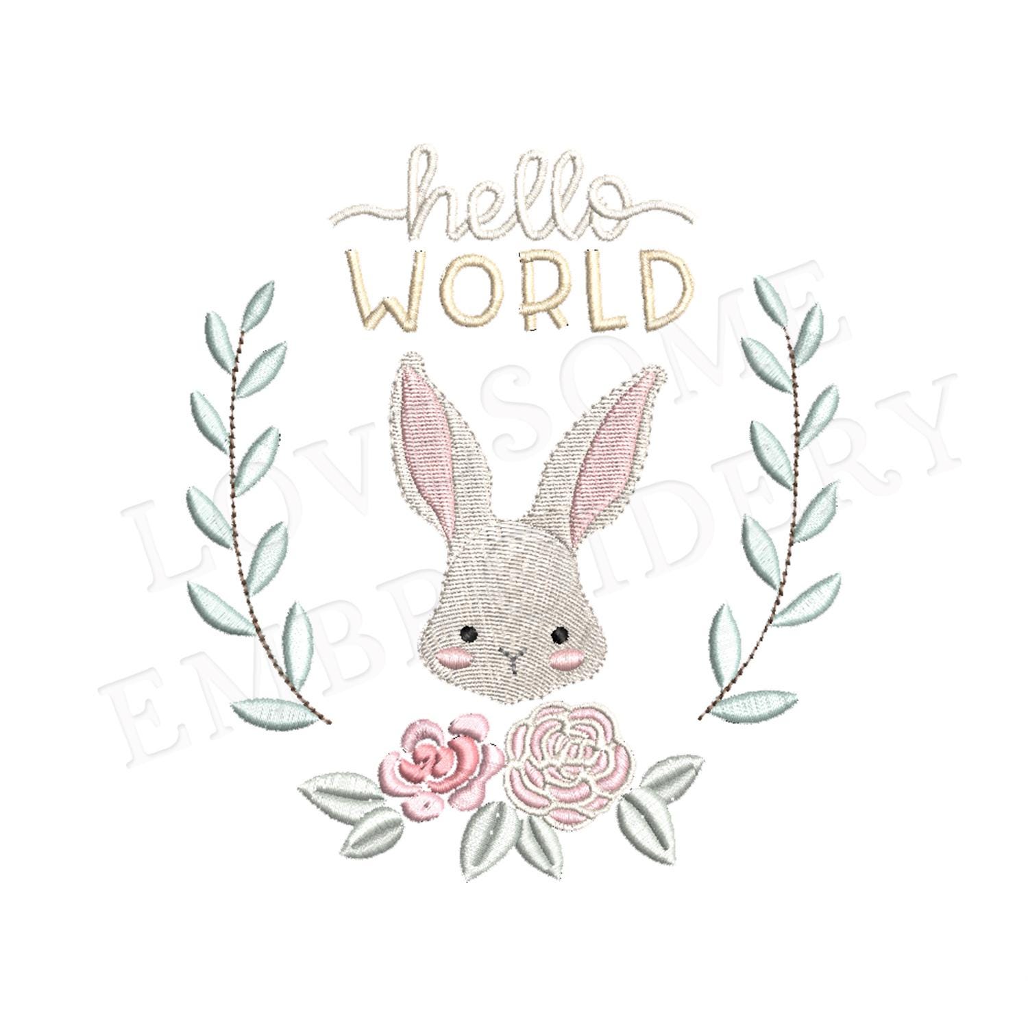 Hello World Floral 5x7 Easter Rabbit Machine Embroidery Design Digital Download | Lovesome Design