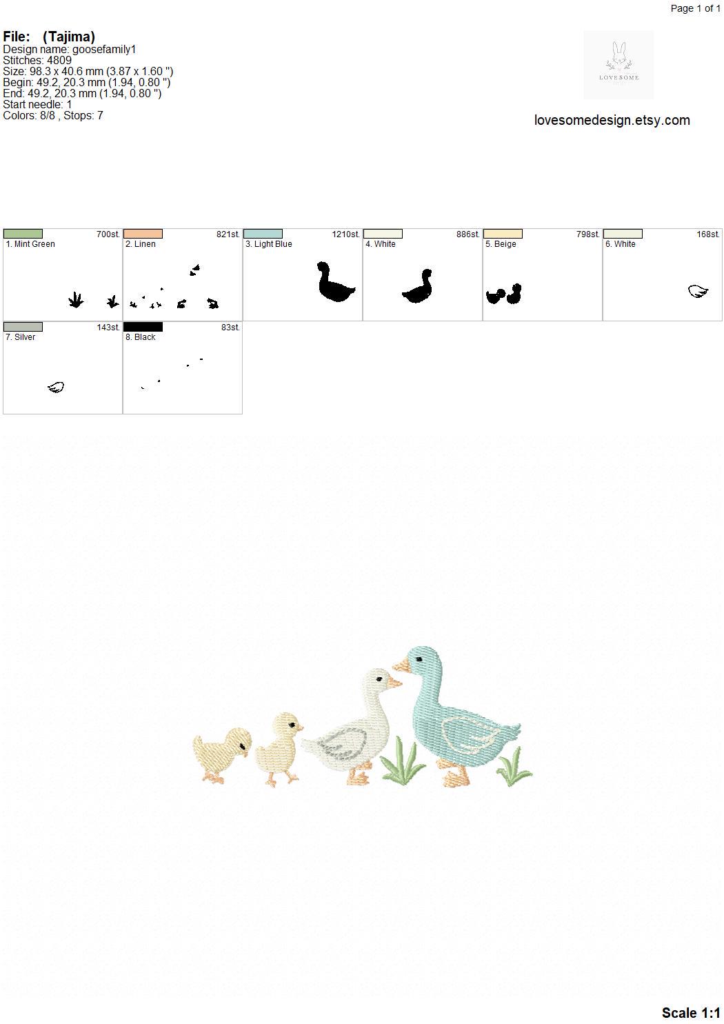 This listing includes one cute goose family design for machine embroidery in 4inch size.