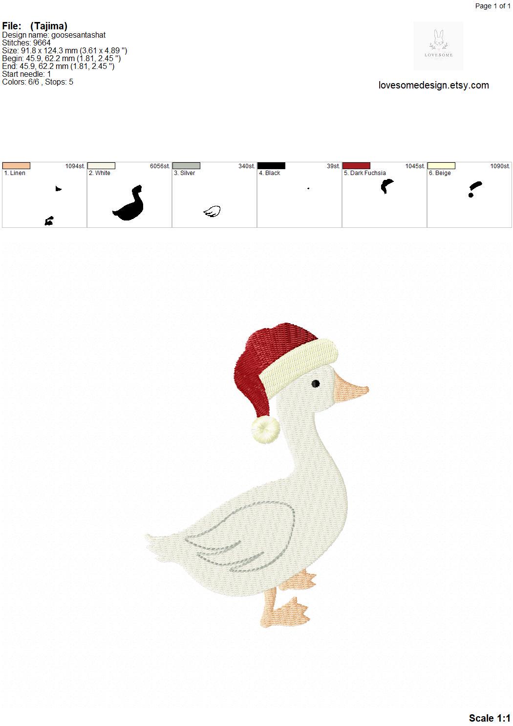 Santa Hat Cute Goose Big Three Sizes Machine Embroidery Design, Lovely Goose Santa Hat Multiple Size Embroidery File Set | Lovesome Design