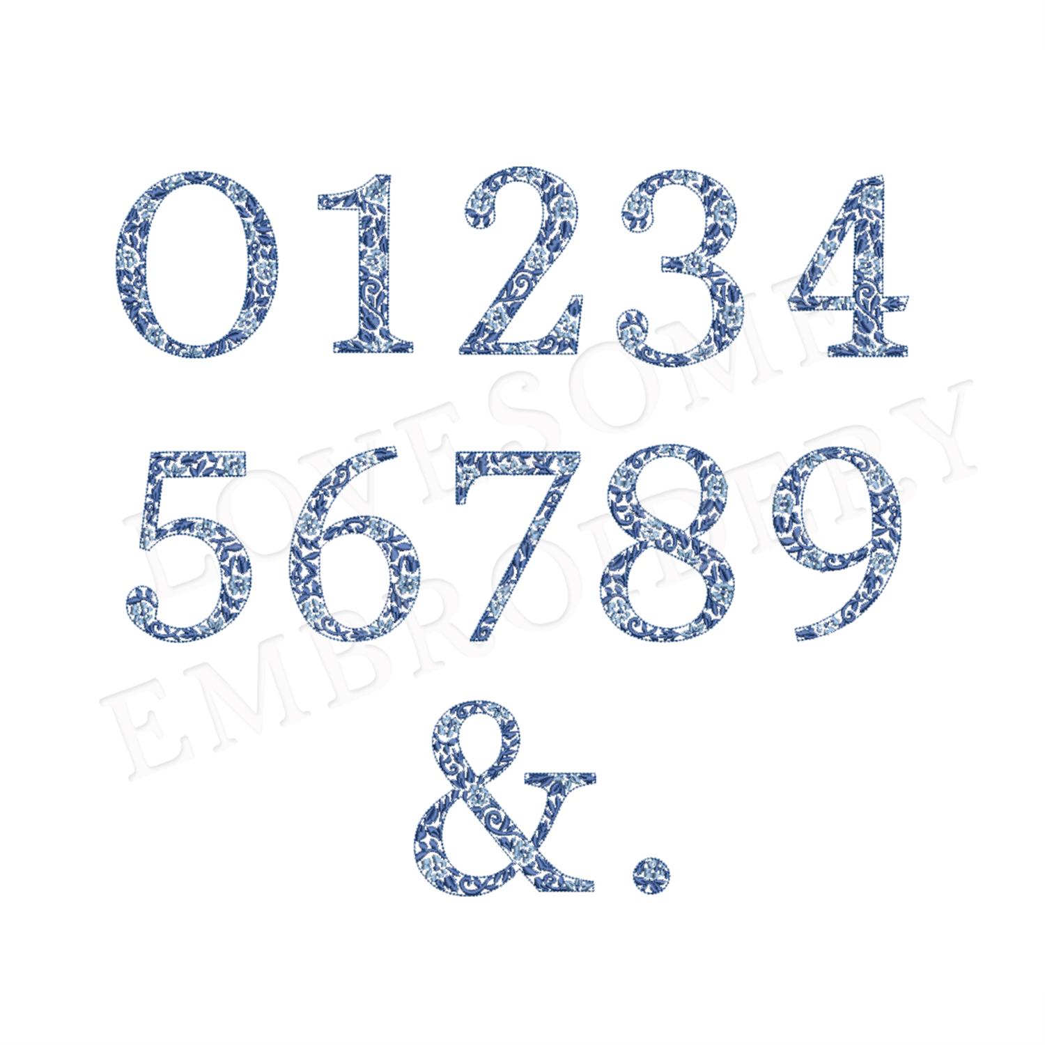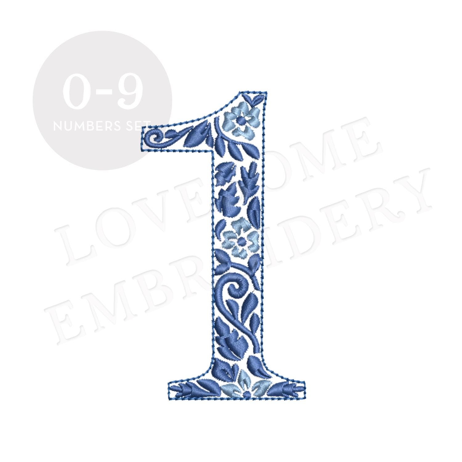 NEW Chinoiserie Numbers 4inch 0-9 Machine Embroidery Numbers in Blue White Digital Download | Lovesome Design