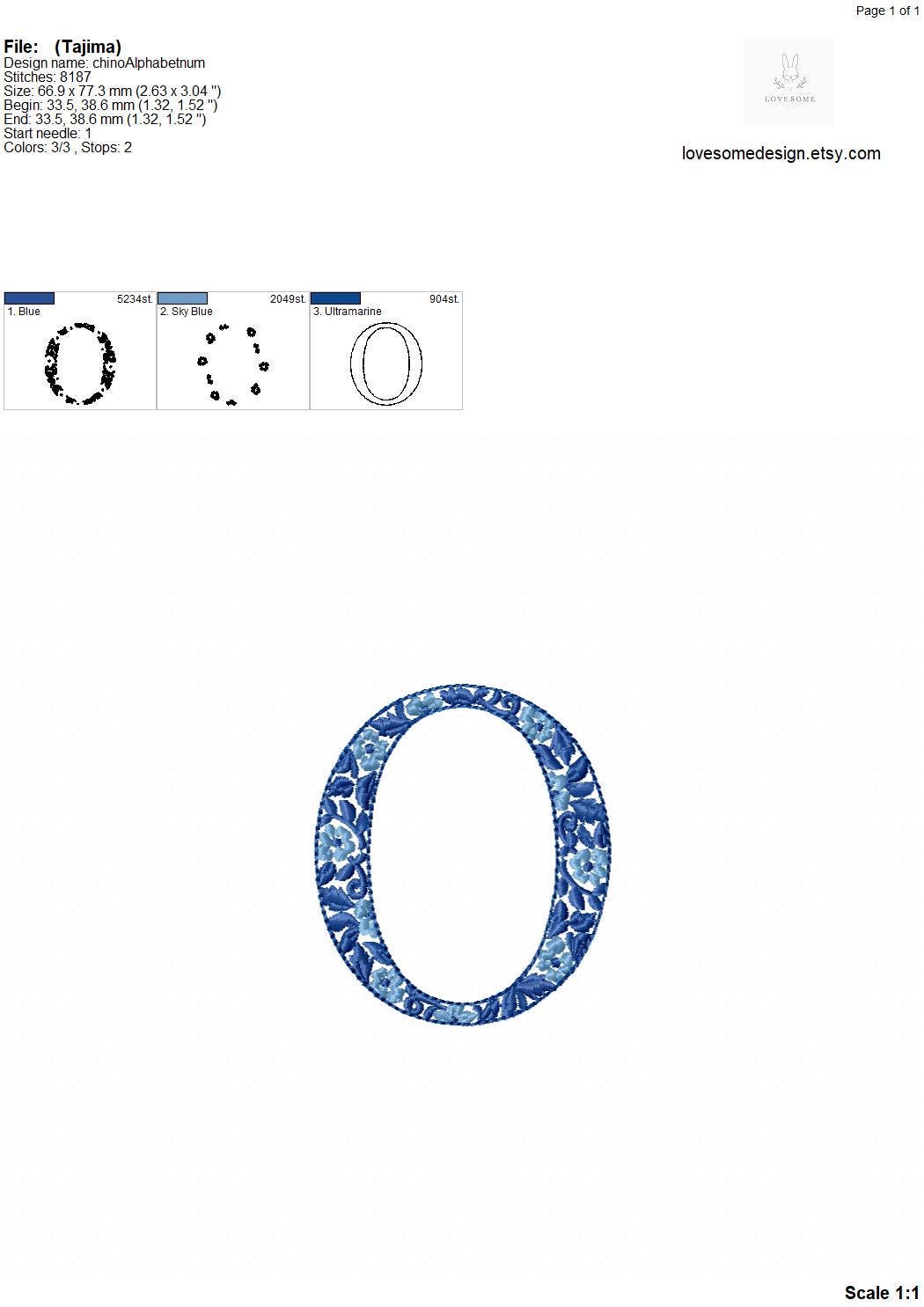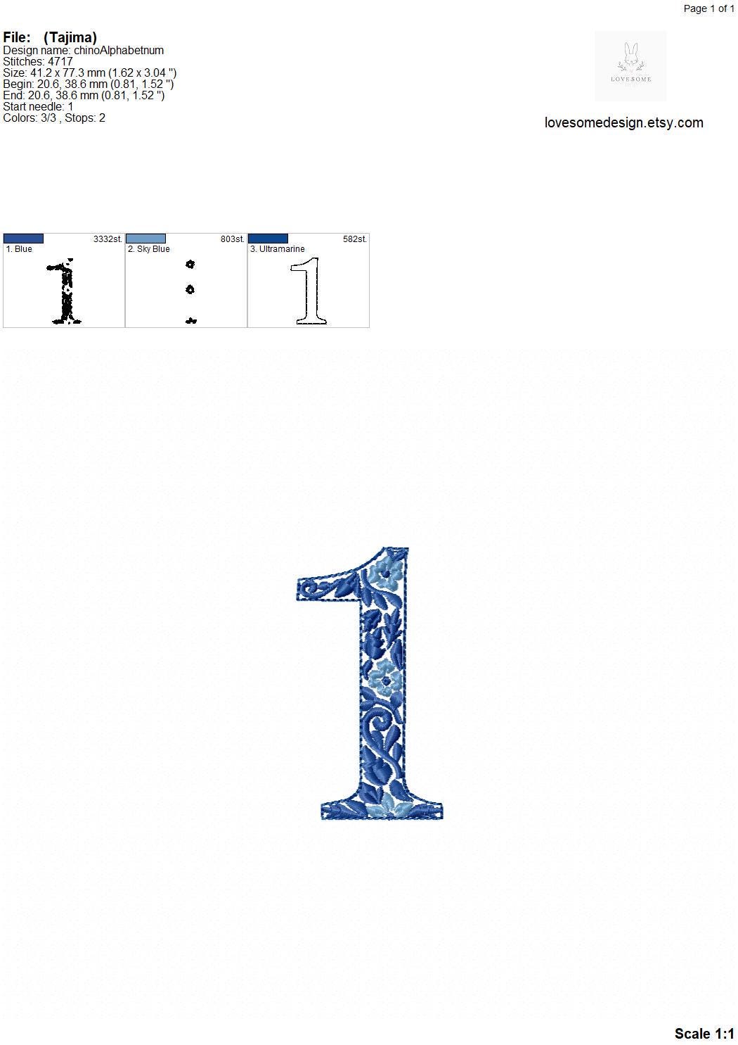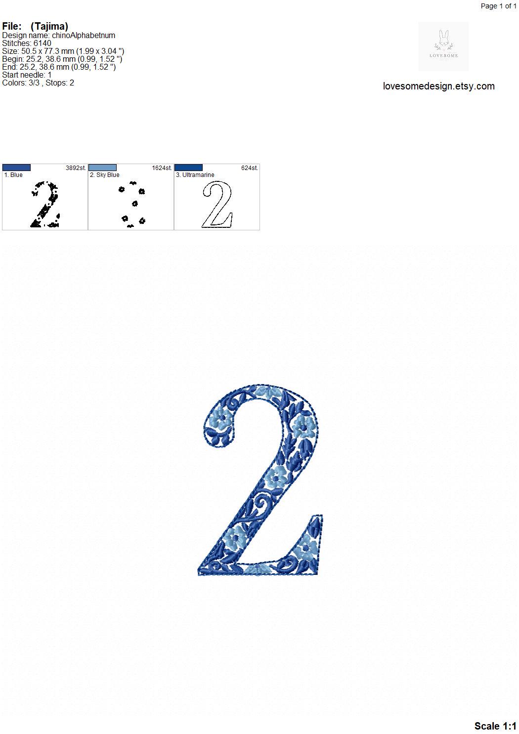 This listing features a machine embroidery font set which includes embroidery files of 10 chinoiserie numbers 0-9 in blue white colors in 3inch size. For the whole set, pls see the listing images.