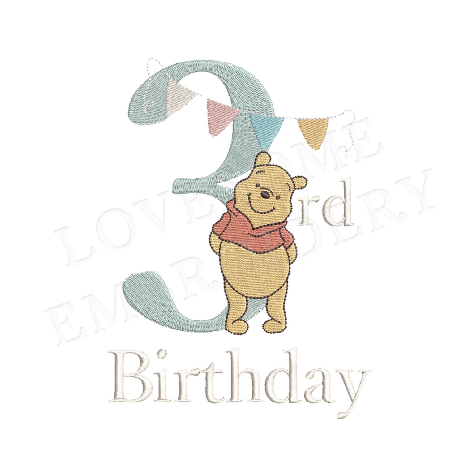 Pooh Bear Third Birthday 4x4 Machine Embroidery Design Digital Download | Lovesome Design