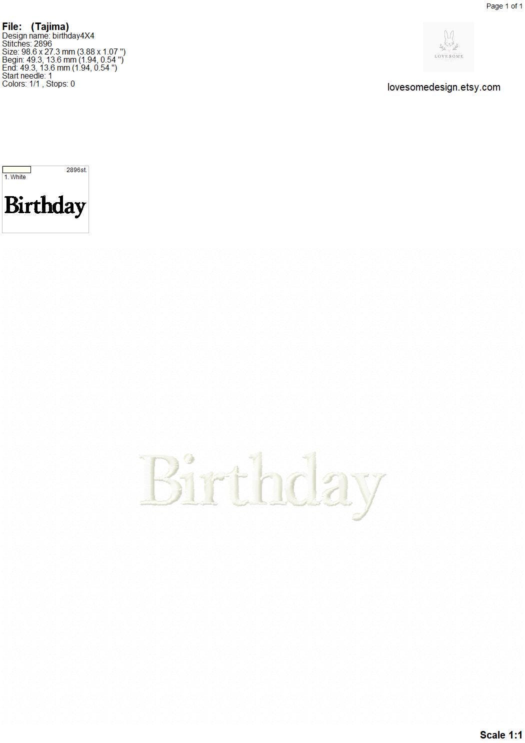 This machine embroidery design is for 4x4 embroidery hoops. You can stitch the whole design in two hoopings. The word 'Birthday' needs to be stitched separately. Great for stitching on baby and kids items. Either you are a DIYer or a small business owner, our embroidery files are perfect for your projects.