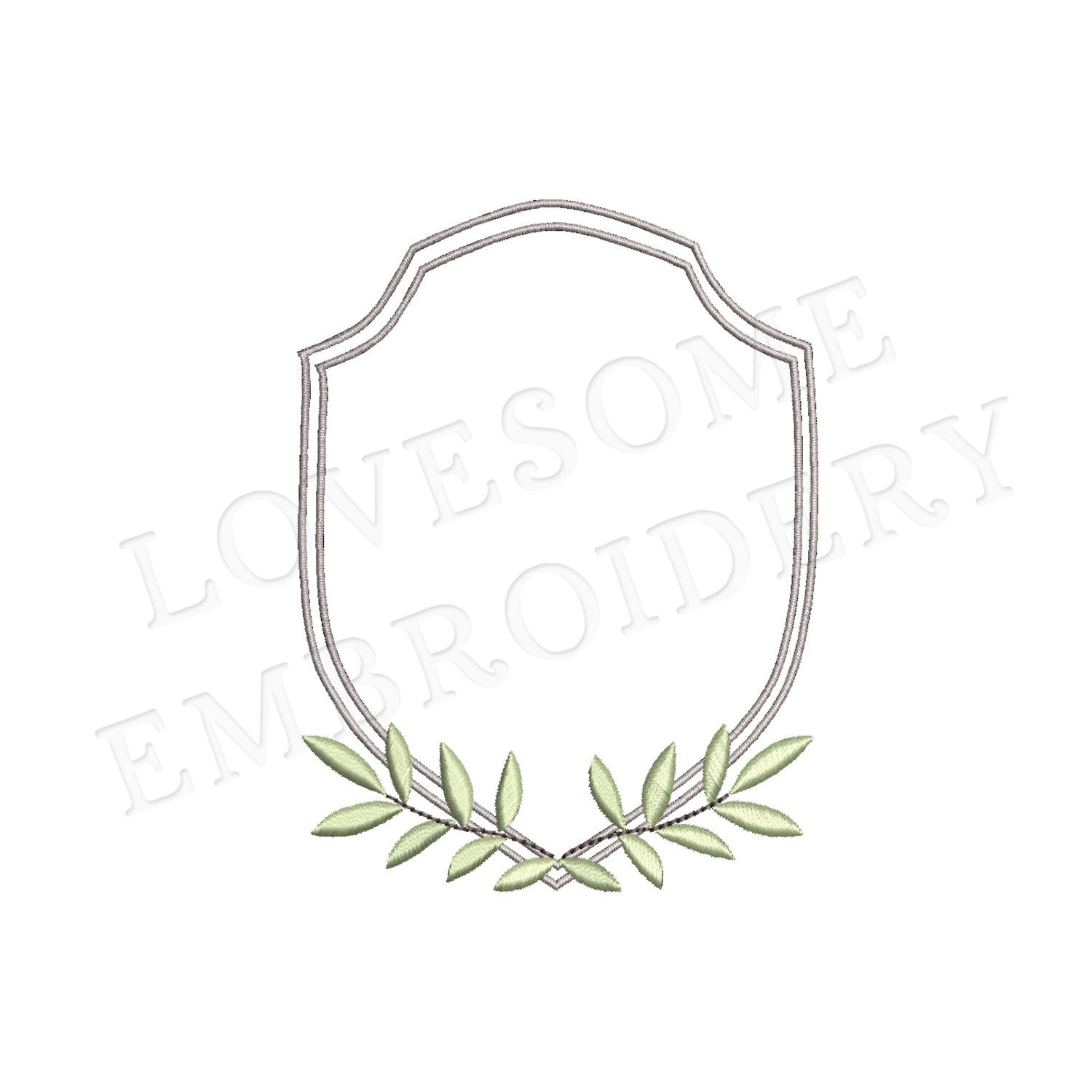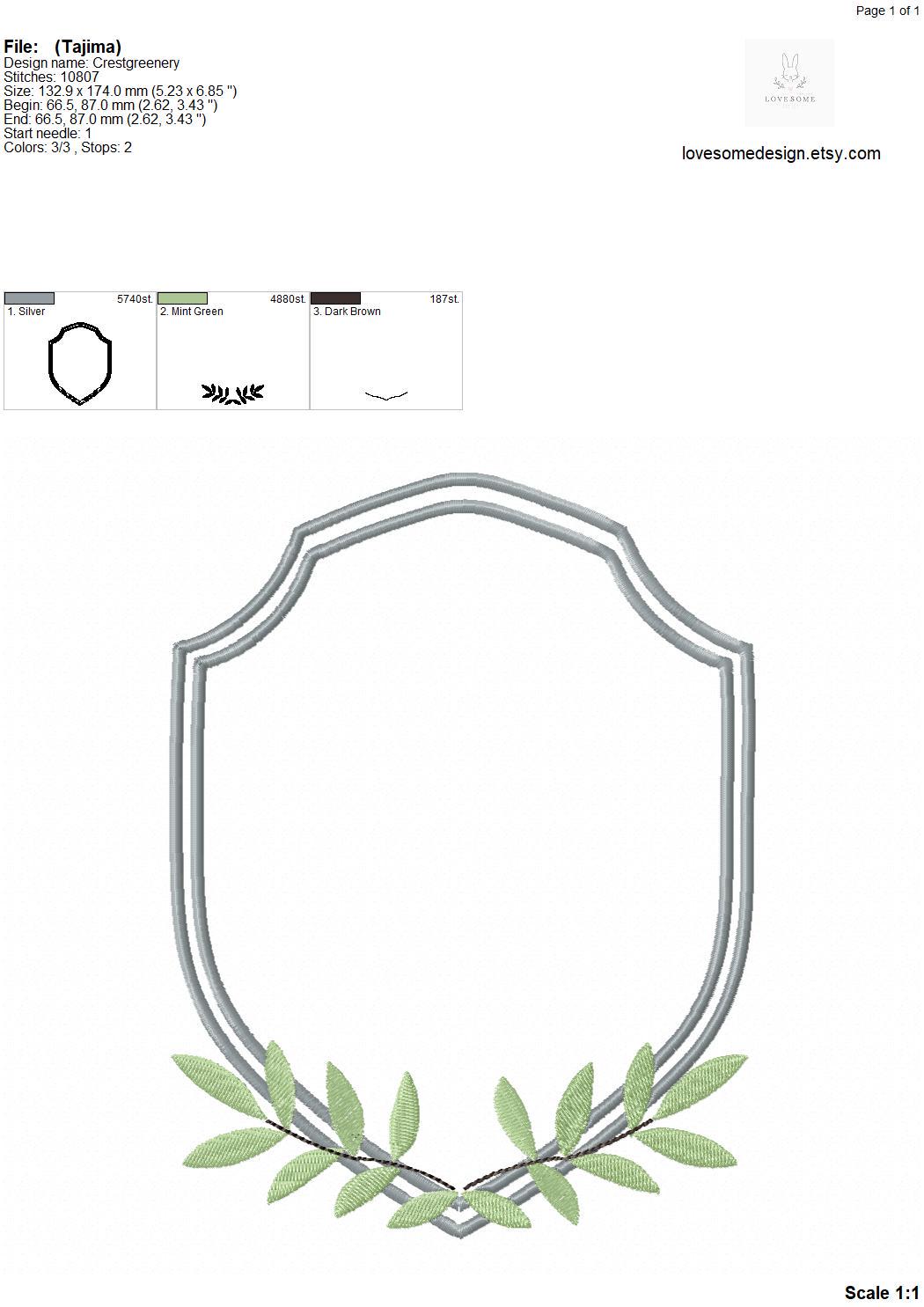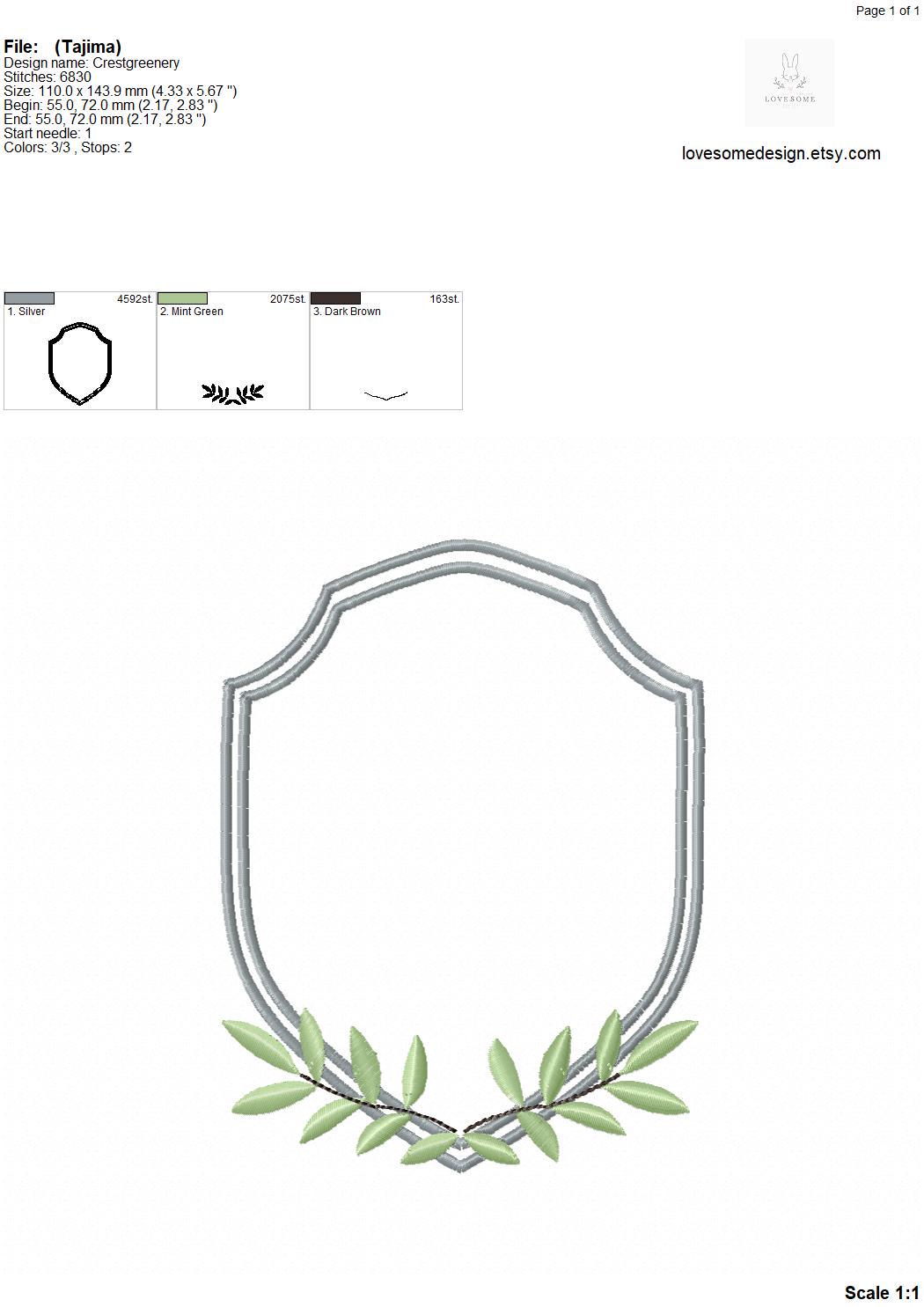 This listing features a machine embroidery file of crest with green foliage design in three big sizes: 6inch, 7inch and 8inches.