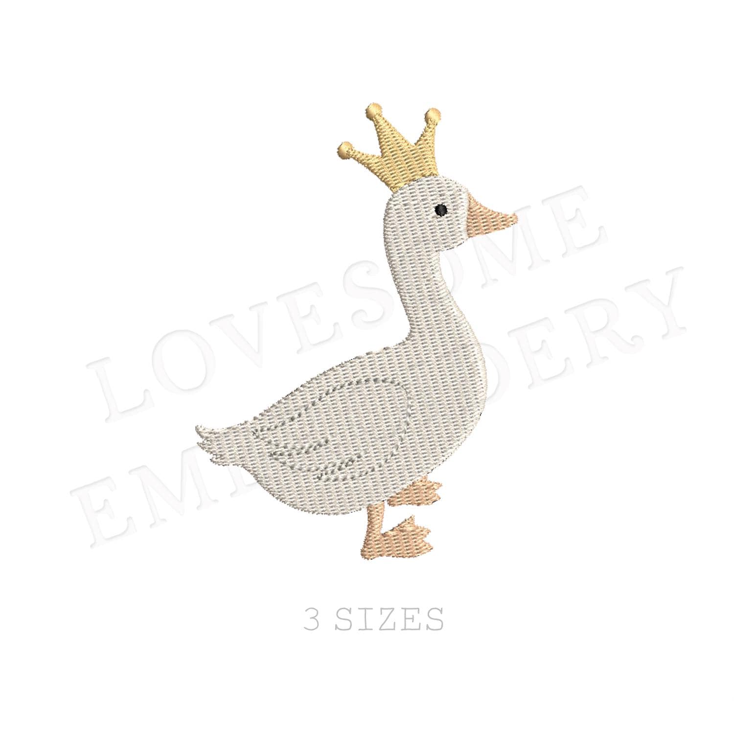 Cute Goose Crown Mini Three Sizes Machine Embroidery Design, Royalty Goose with King Crown Multiple Size Embroidery File | Lovesome Design