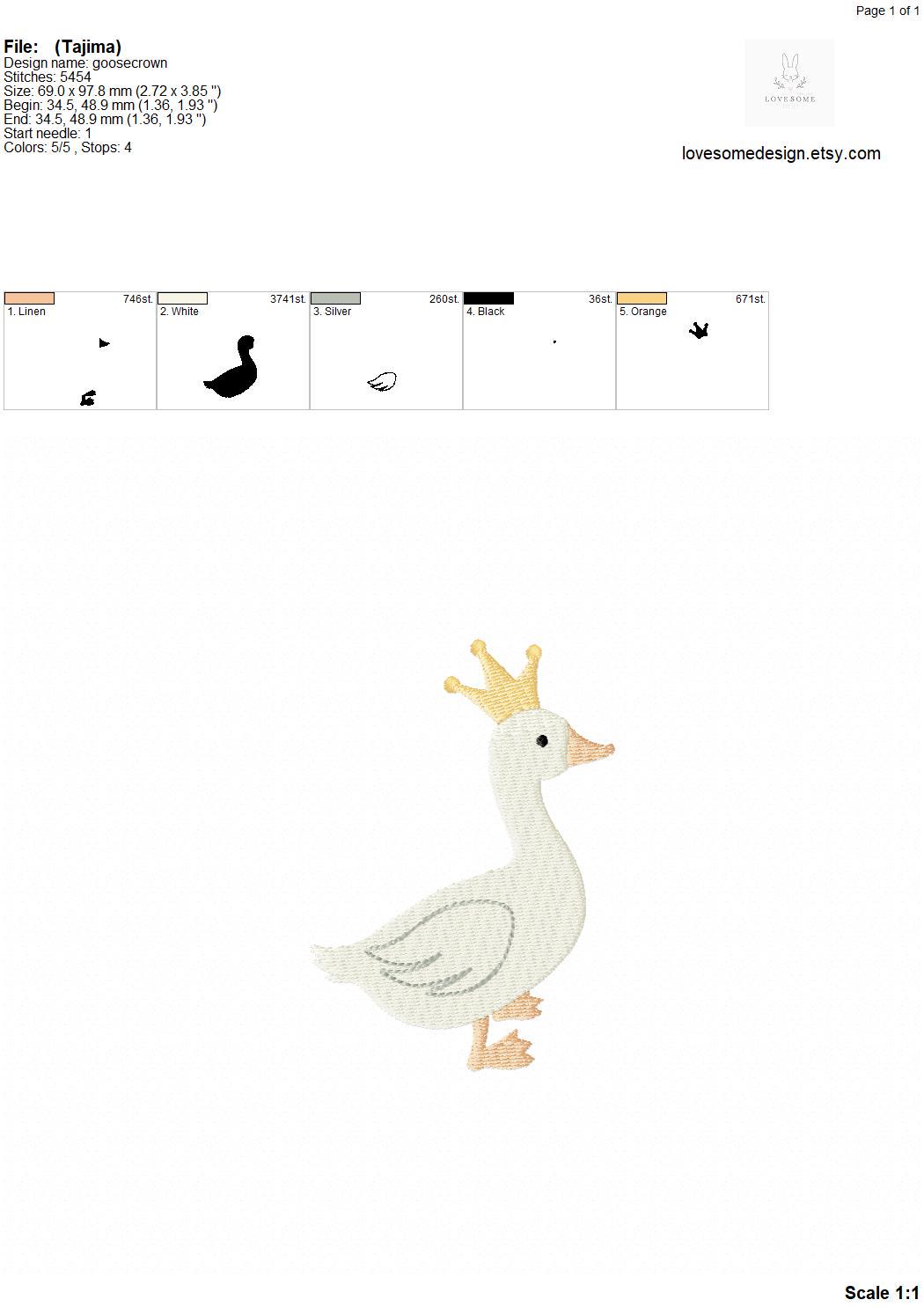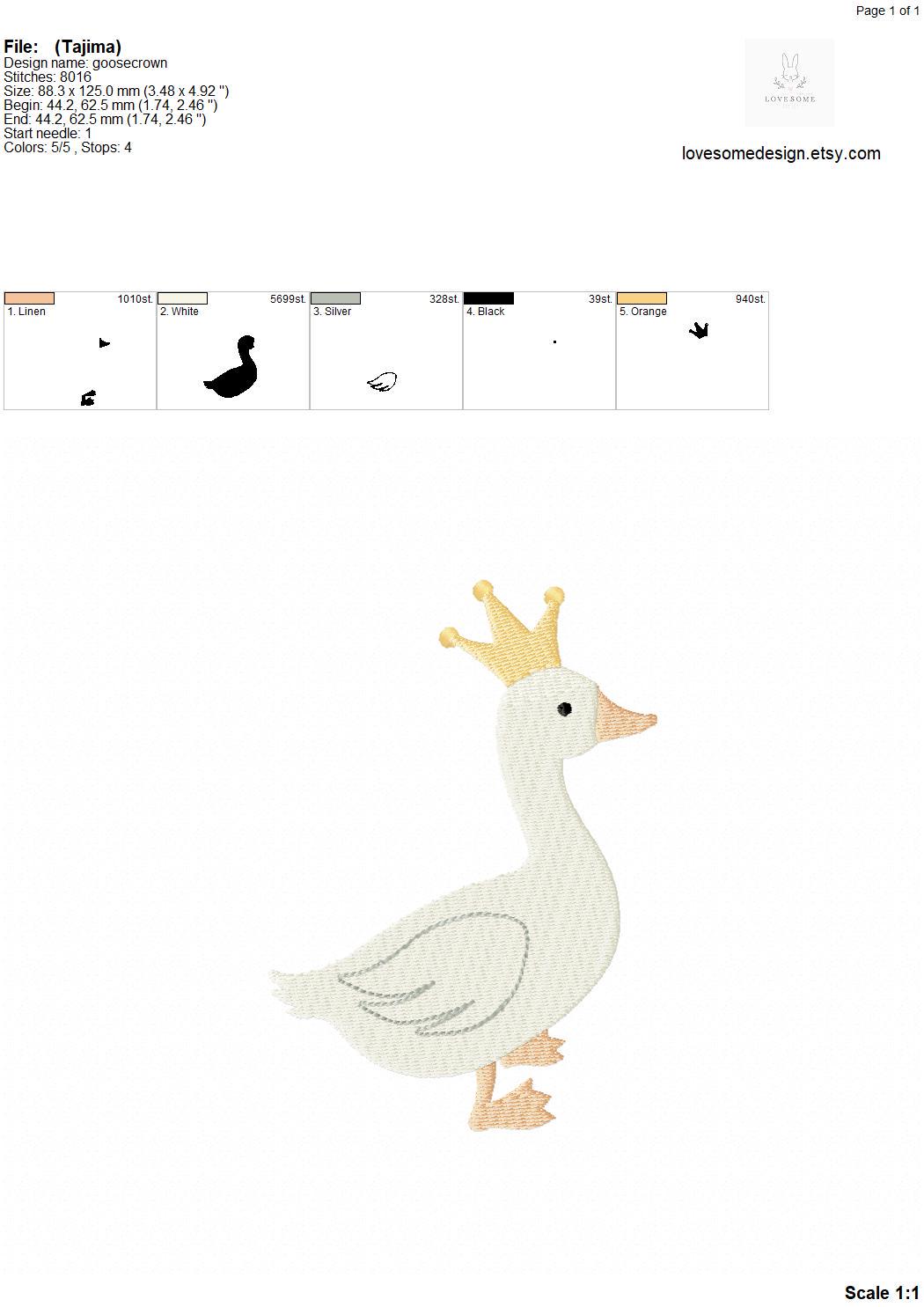 Cute Goose Crown Big Three Sizes Machine Embroidery Design, Royalty Goose with King Crown Multiple Size Embroidery File | Lovesome Design