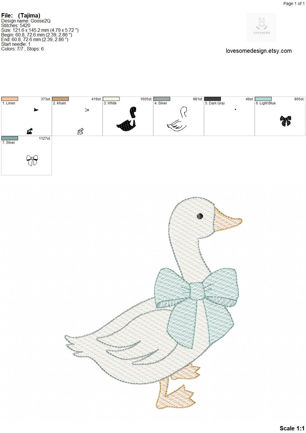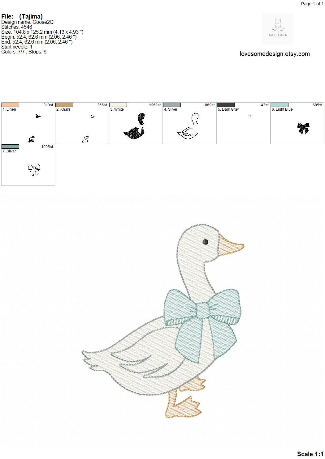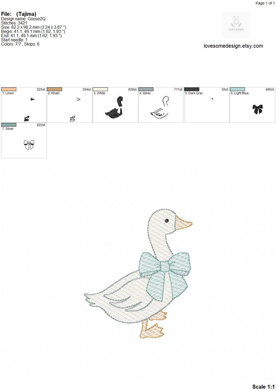 This listing includes one cute silly goose with a lovely bow quick stitch (aka. sketch fill) design for machine embroidery in three big sizes, each appr. in 4inch, 5inch and 6inch size for embroidery hoops in different sizes.