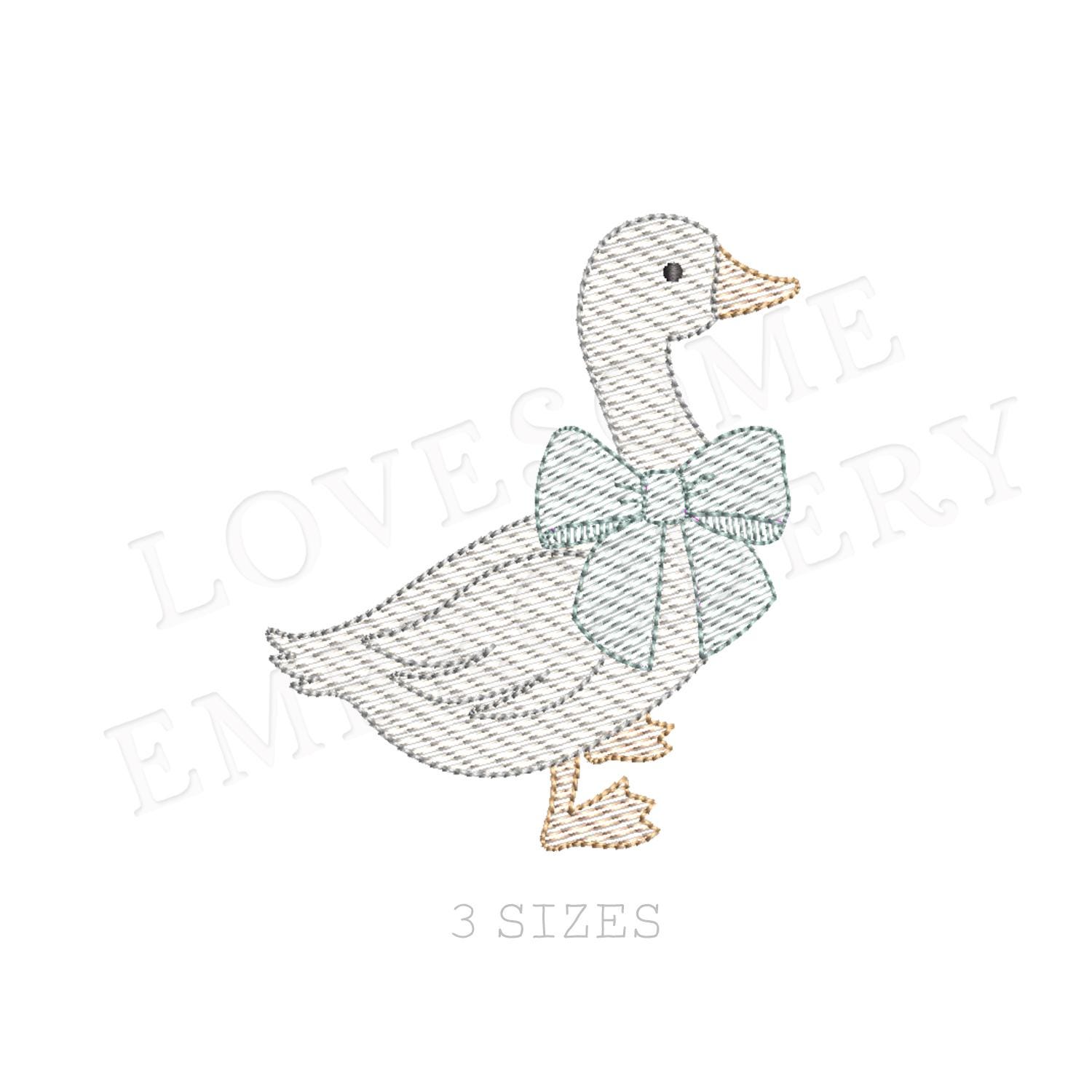 Cute Silly Goose Quick Stitch Big Three Sizes Machine Embroidery Design, Lovely Goose with Big Bow Embroidery Files | Lovesome Design