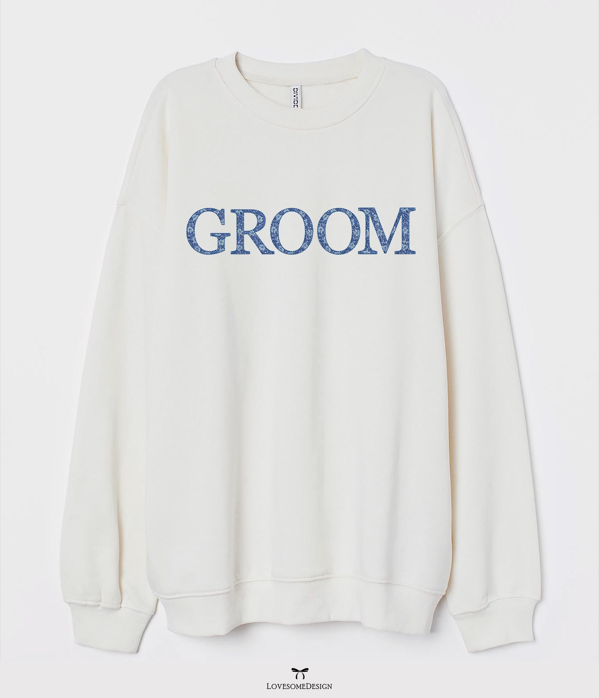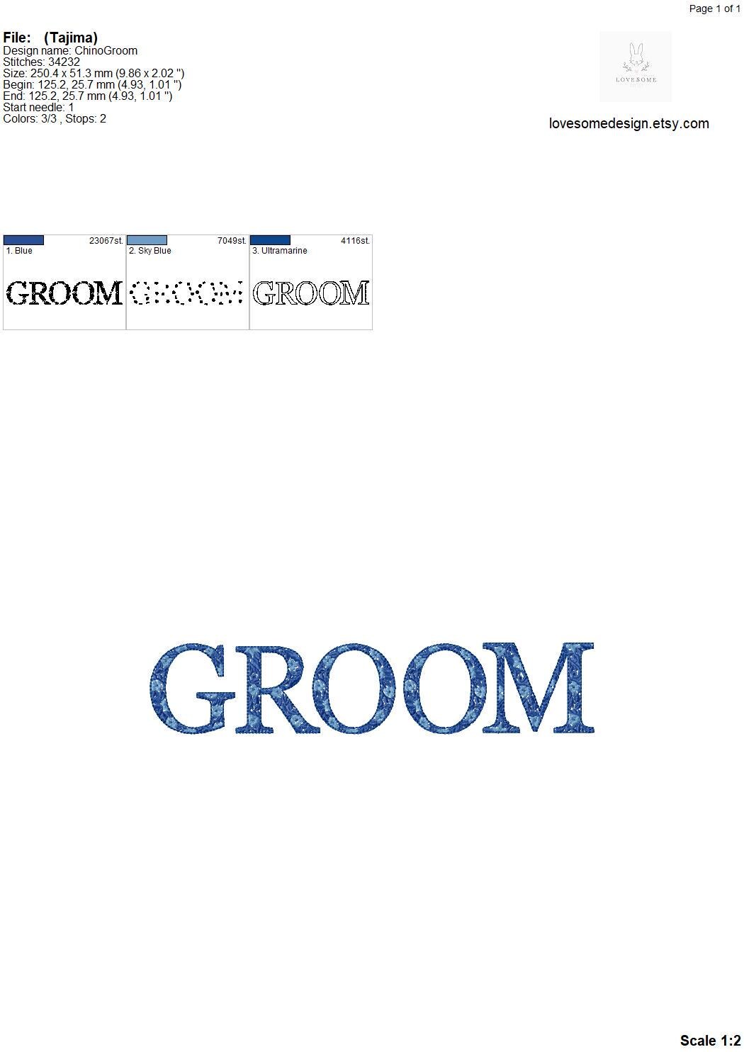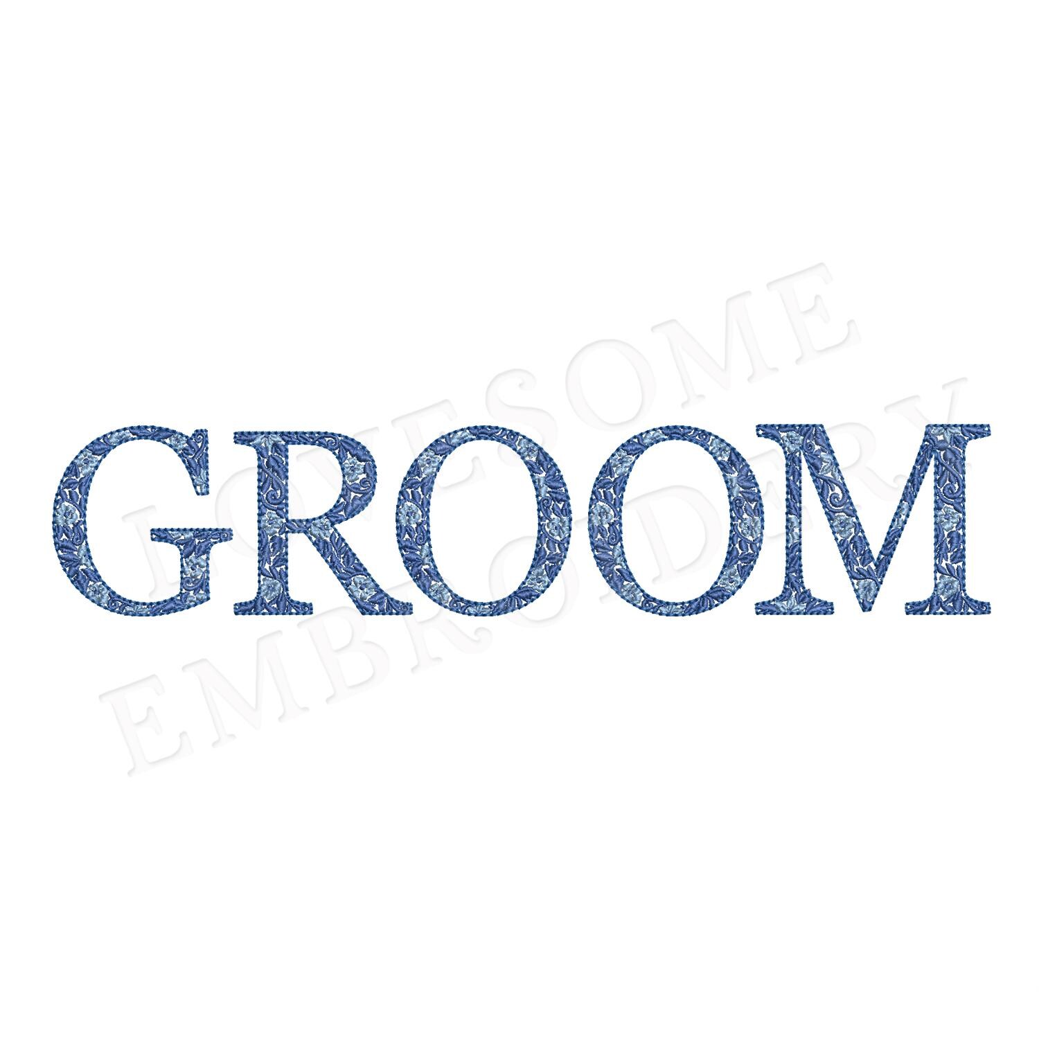 This listing features a machine embroidery file of word "GROOM" which has a beautiful chinoiserie fill design with blue white colors in 10inch size.