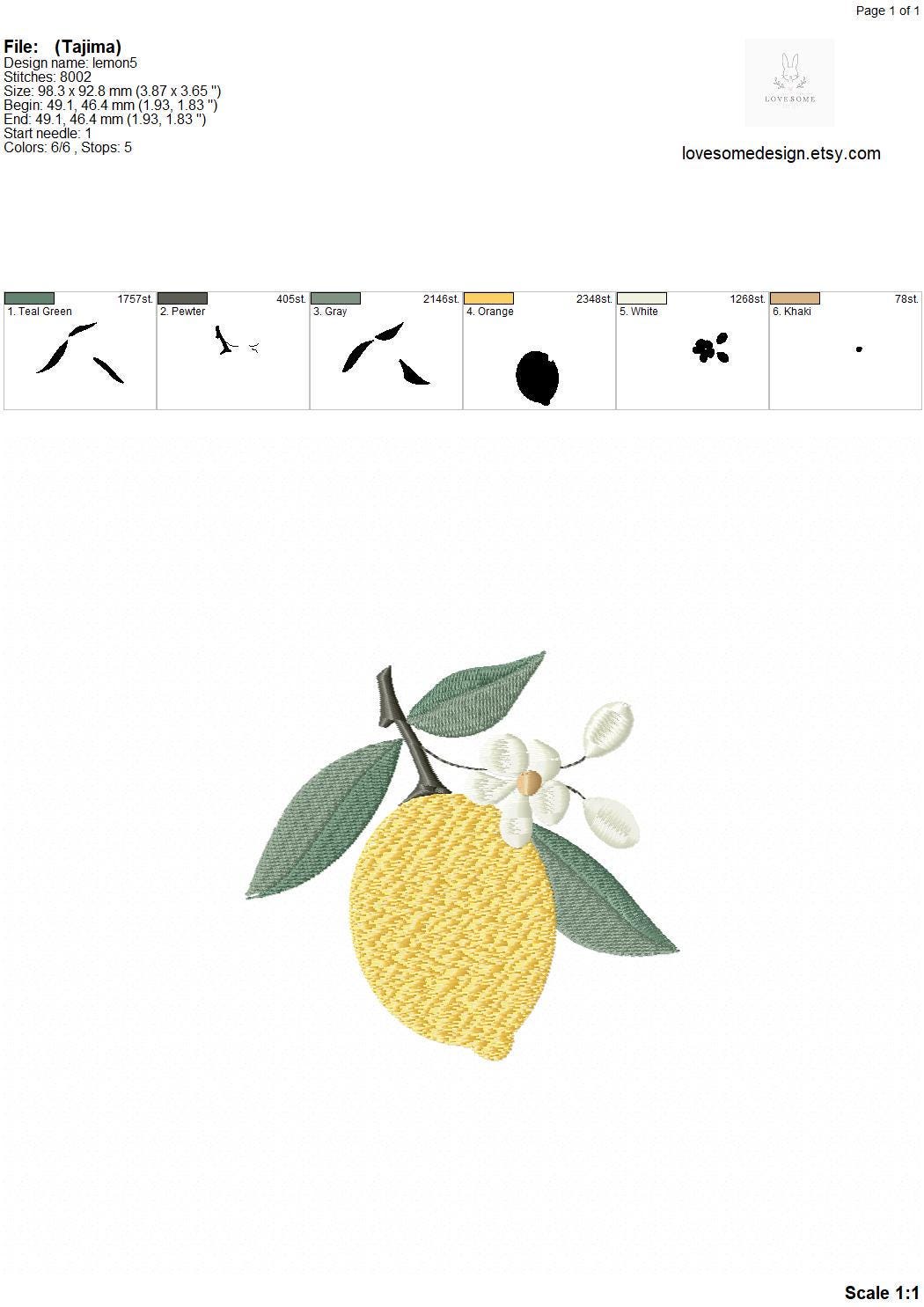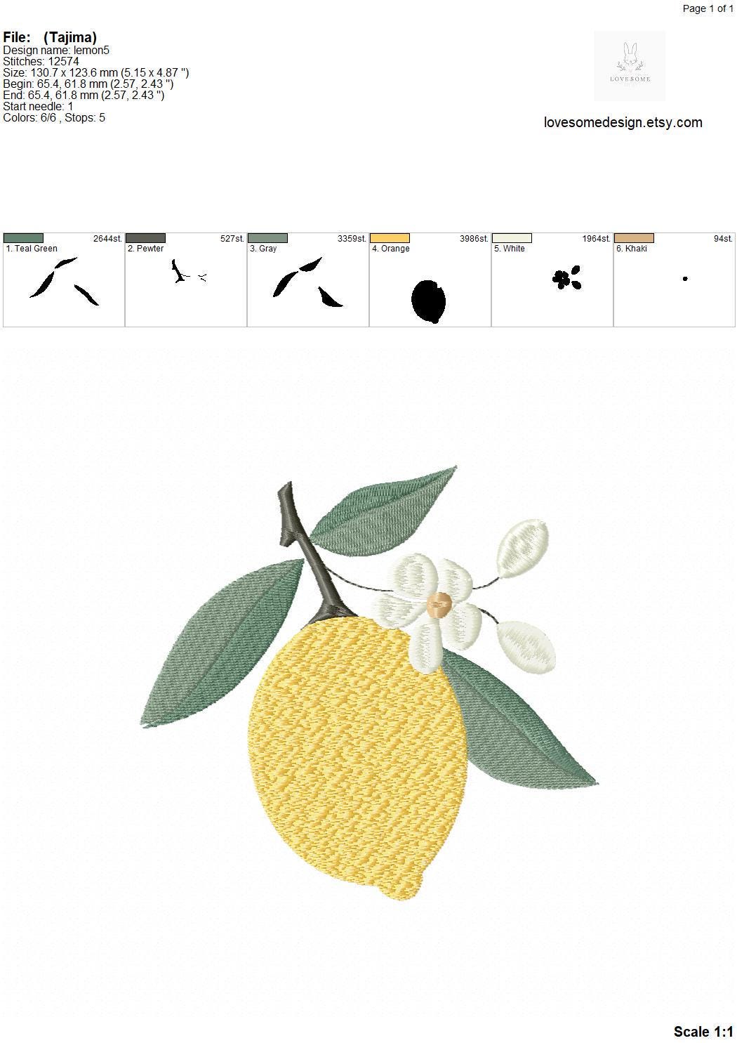 This listing includes one cute lemon branch design for machine embroidery in two sizes, appr. 4inch and 5inch size for embroidery hoops in different sizes.