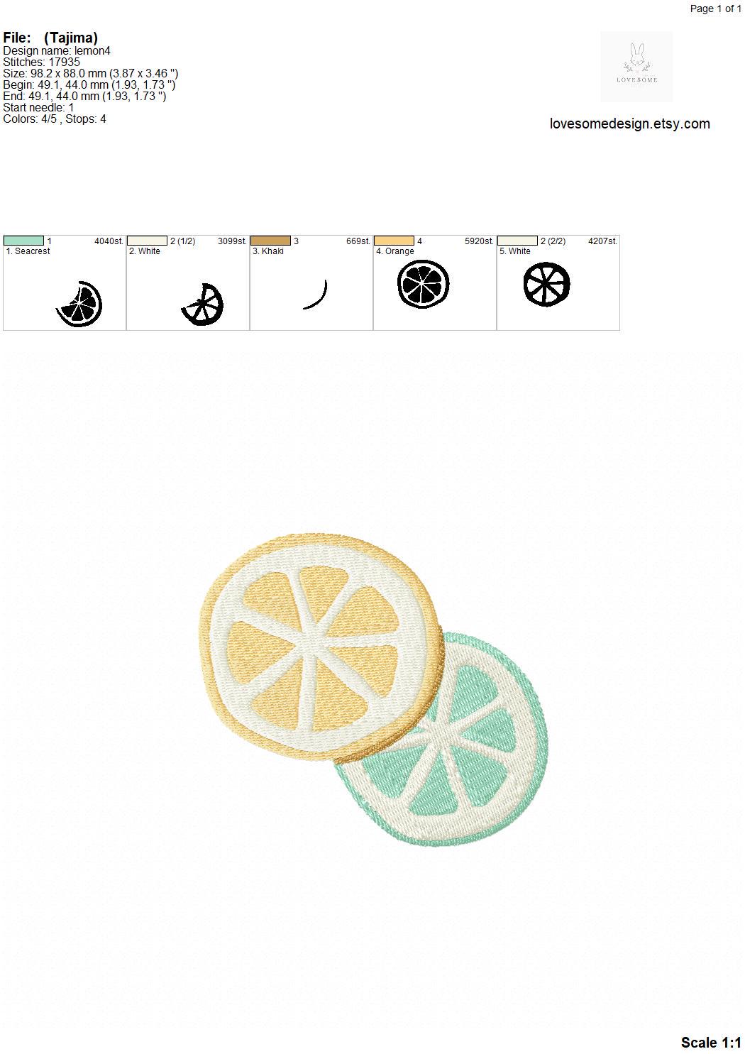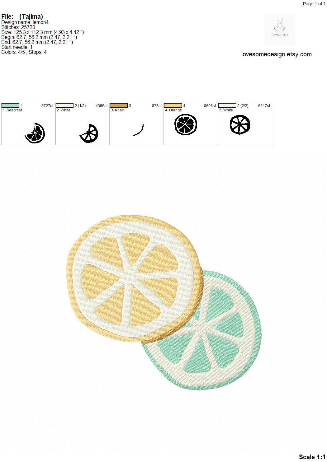 This listing includes one cute lemon slices design for machine embroidery in two sizes, appr. 4inch and 5inch size for embroidery hoops in different sizes.