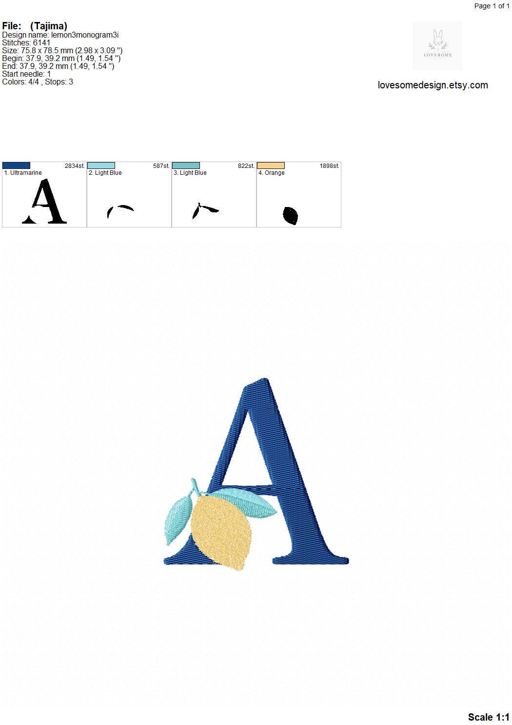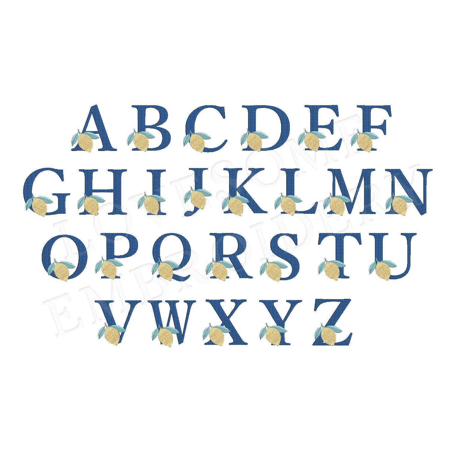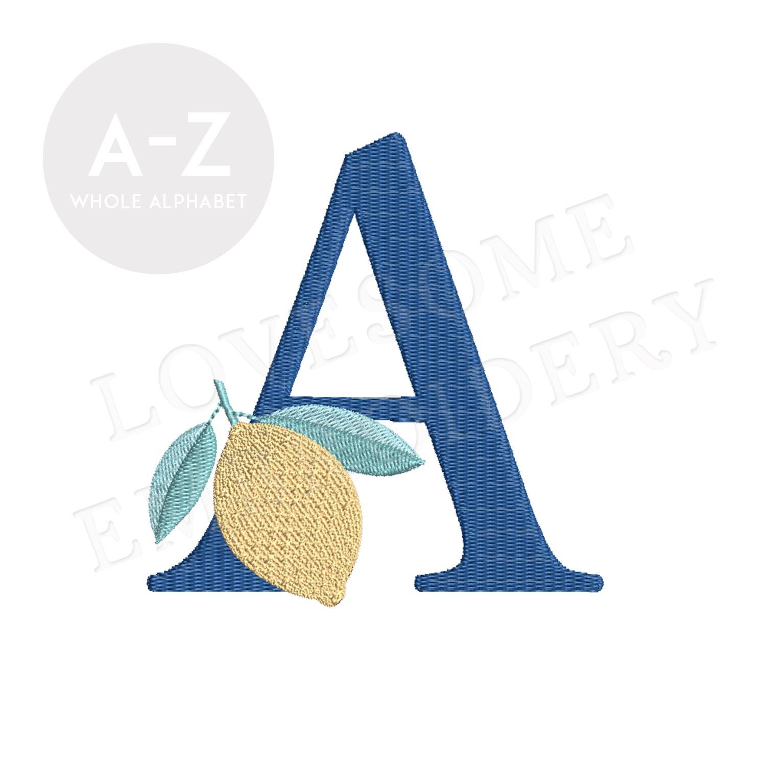 Lemon Monogram 3inch A-Z Machine Embroidery Font Citrus Alphabet BX Summer Embroidery Files | Lovesome Design