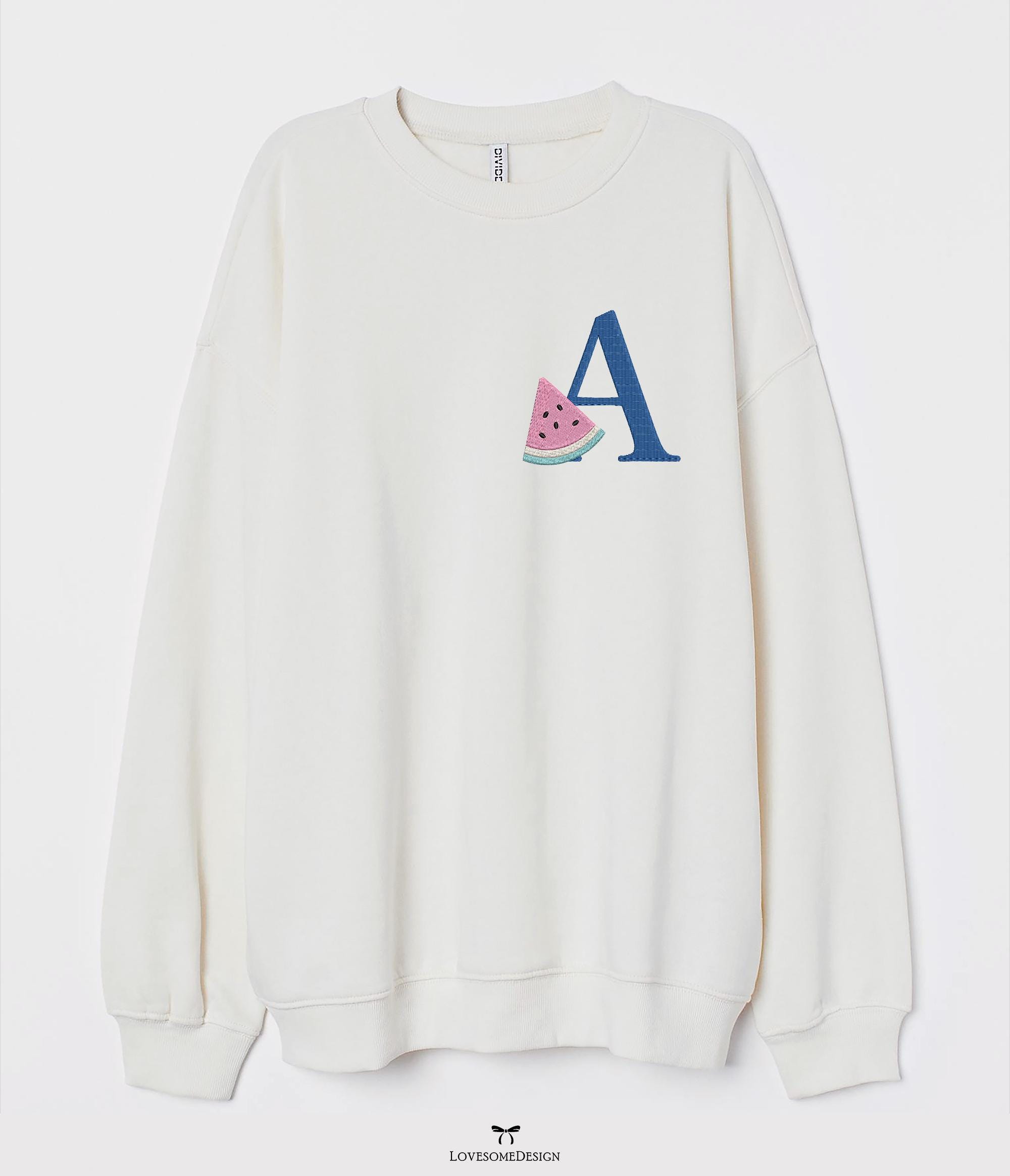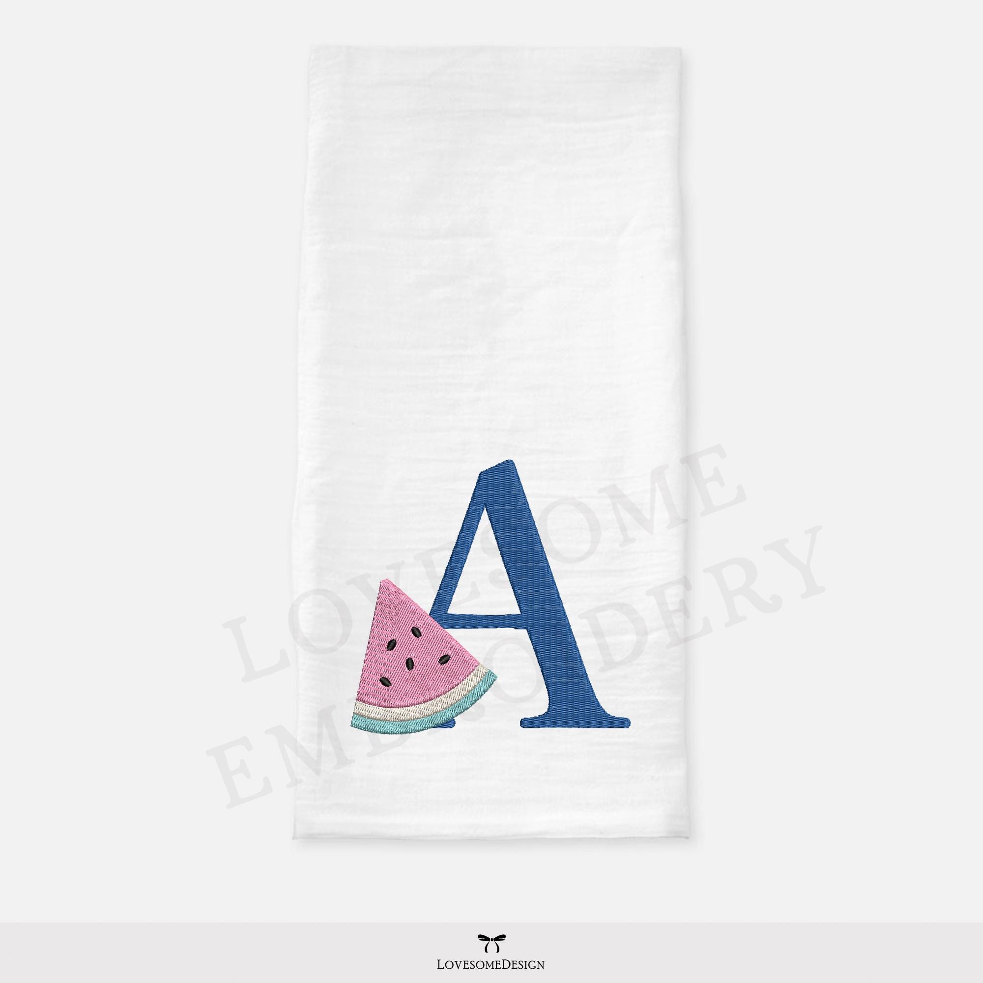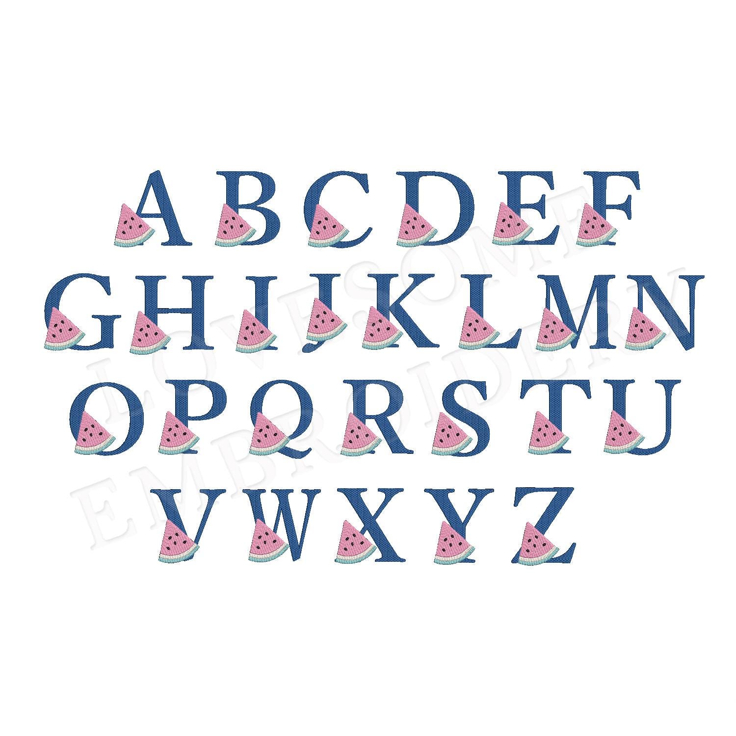 Watermelon Monogram 4inch A-Z Machine Embroidery Font Watermelon Alphabet BX Summer Embroidery Files | Lovesome Design
