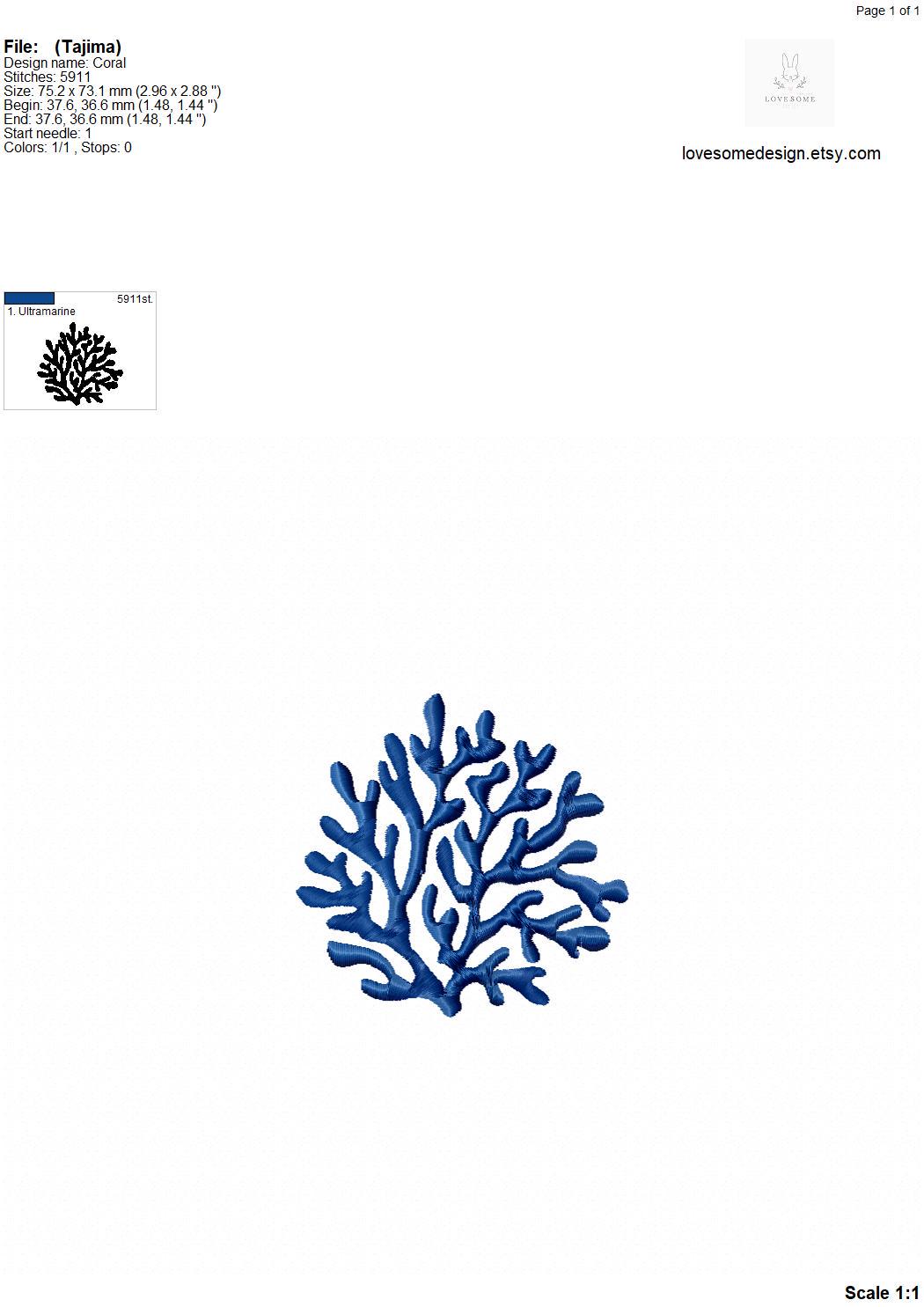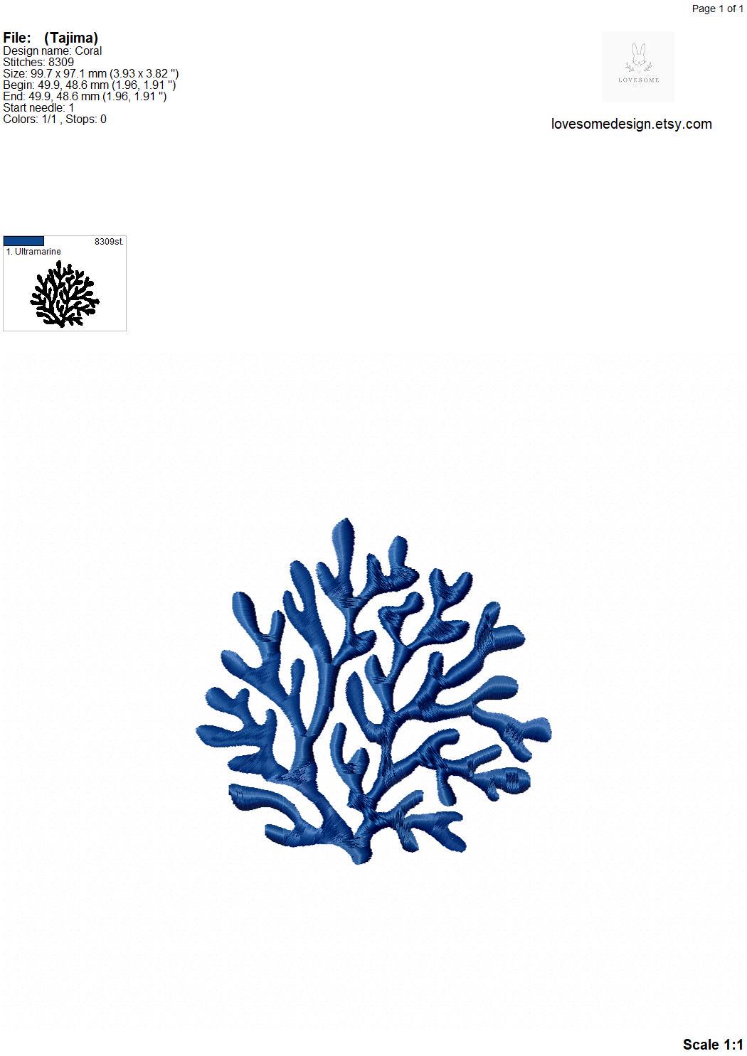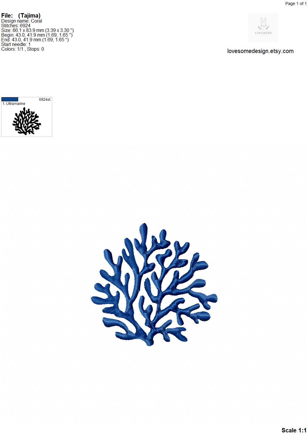 This listing includes one coral design for machine embroidery in three sizes, each appr. in 3inch, 3.5inch and 4inch for embroidery hoops 4x4 and bigger.