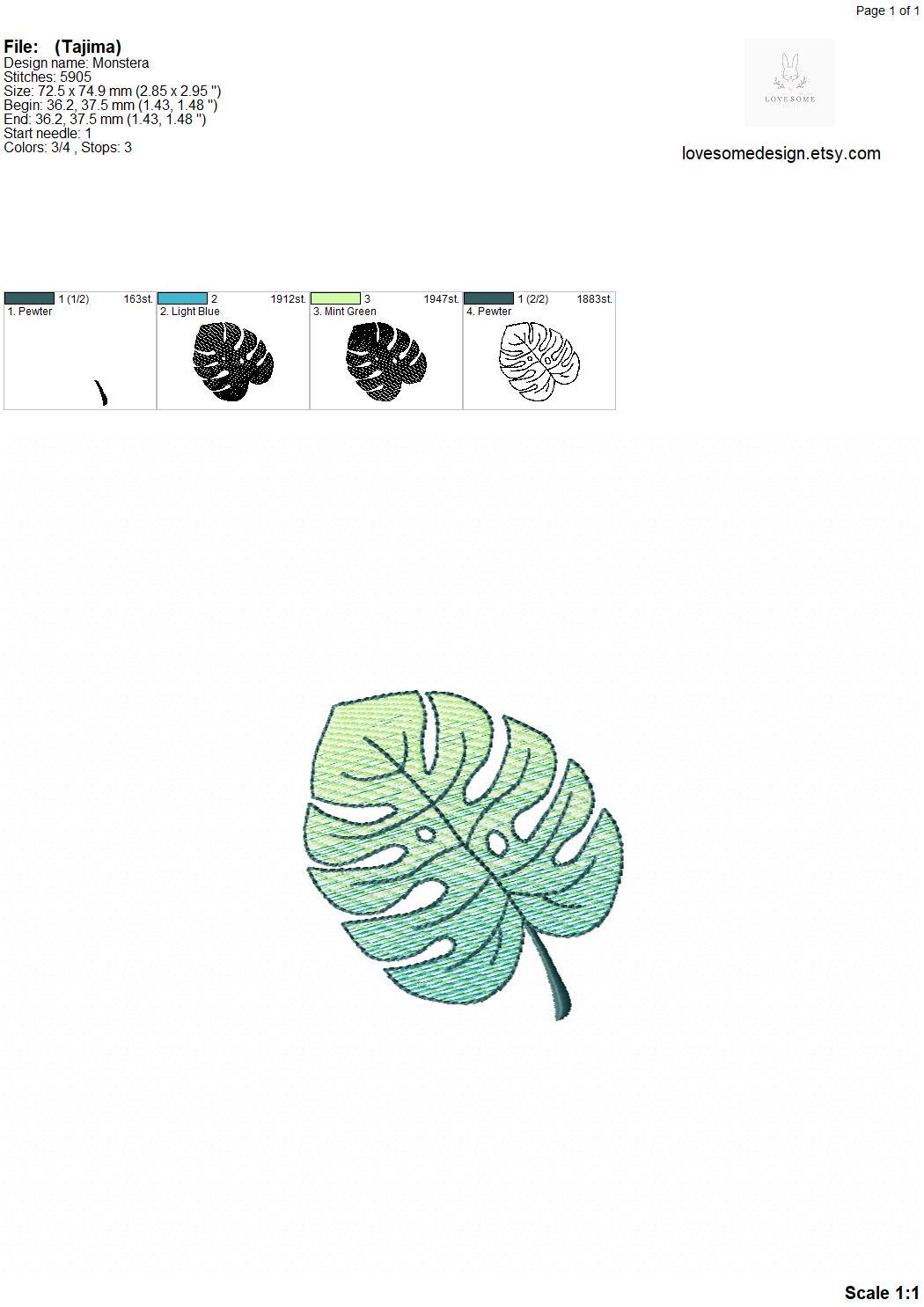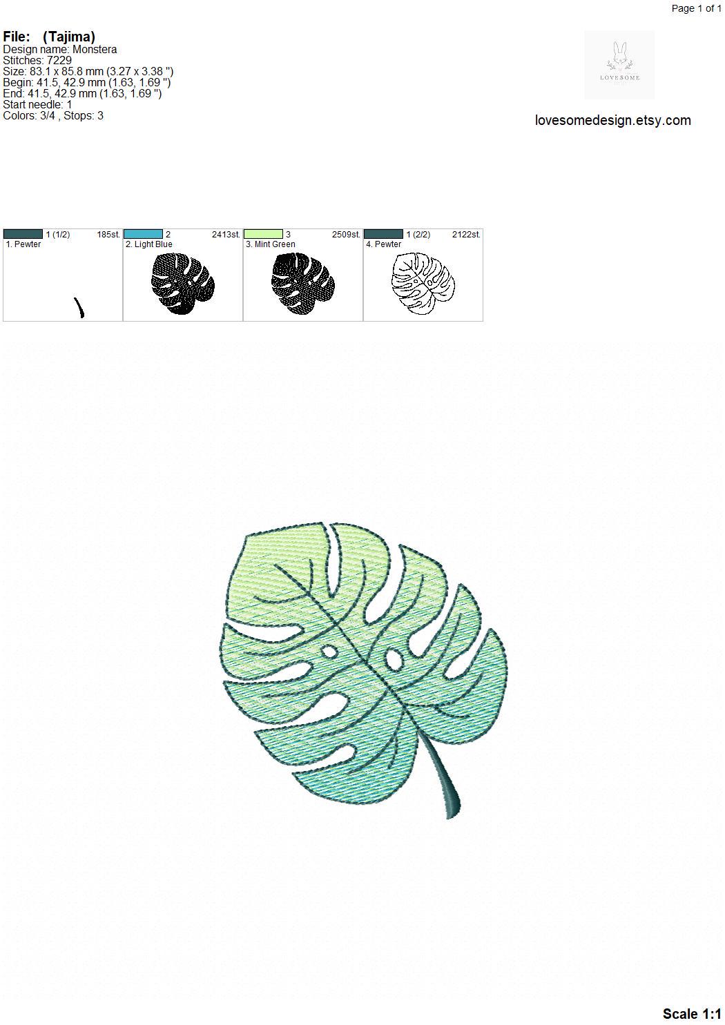 This listing includes one ombre monstera leaf design for machine embroidery in three sizes, each appr. in 3inch, 3.5inch and 4inch for embroidery hoops 4x4 and bigger.
