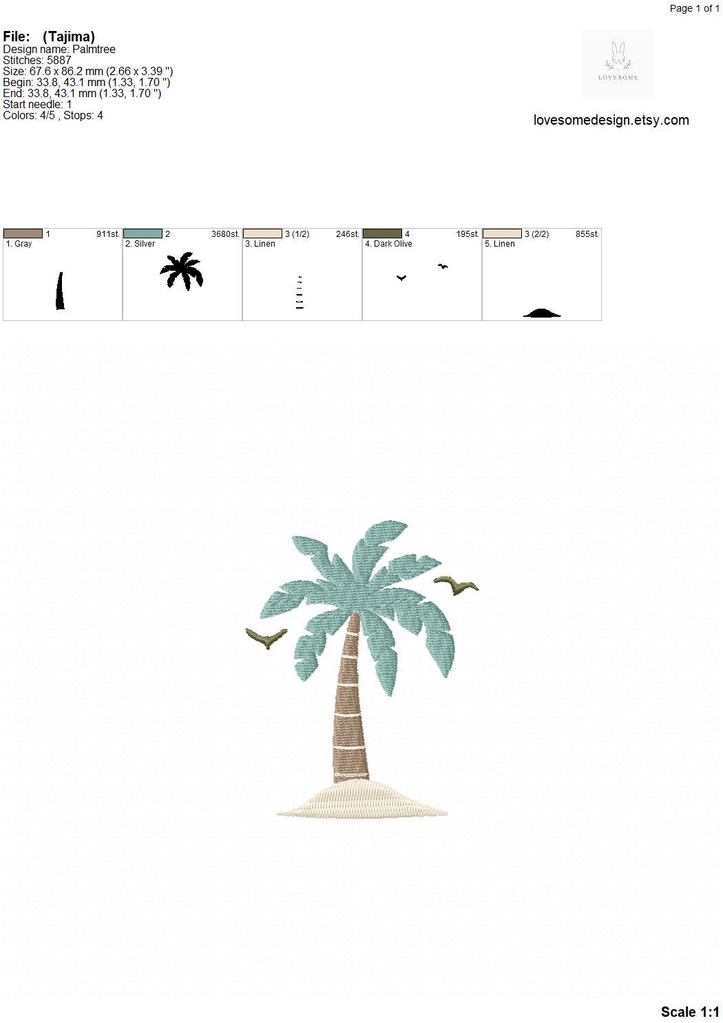 Palm Tree Embroidery Design 3inch 3.5inch 4inch Multisize, Tropical Summer Machine Embroidery Digital File | Lovesome Design