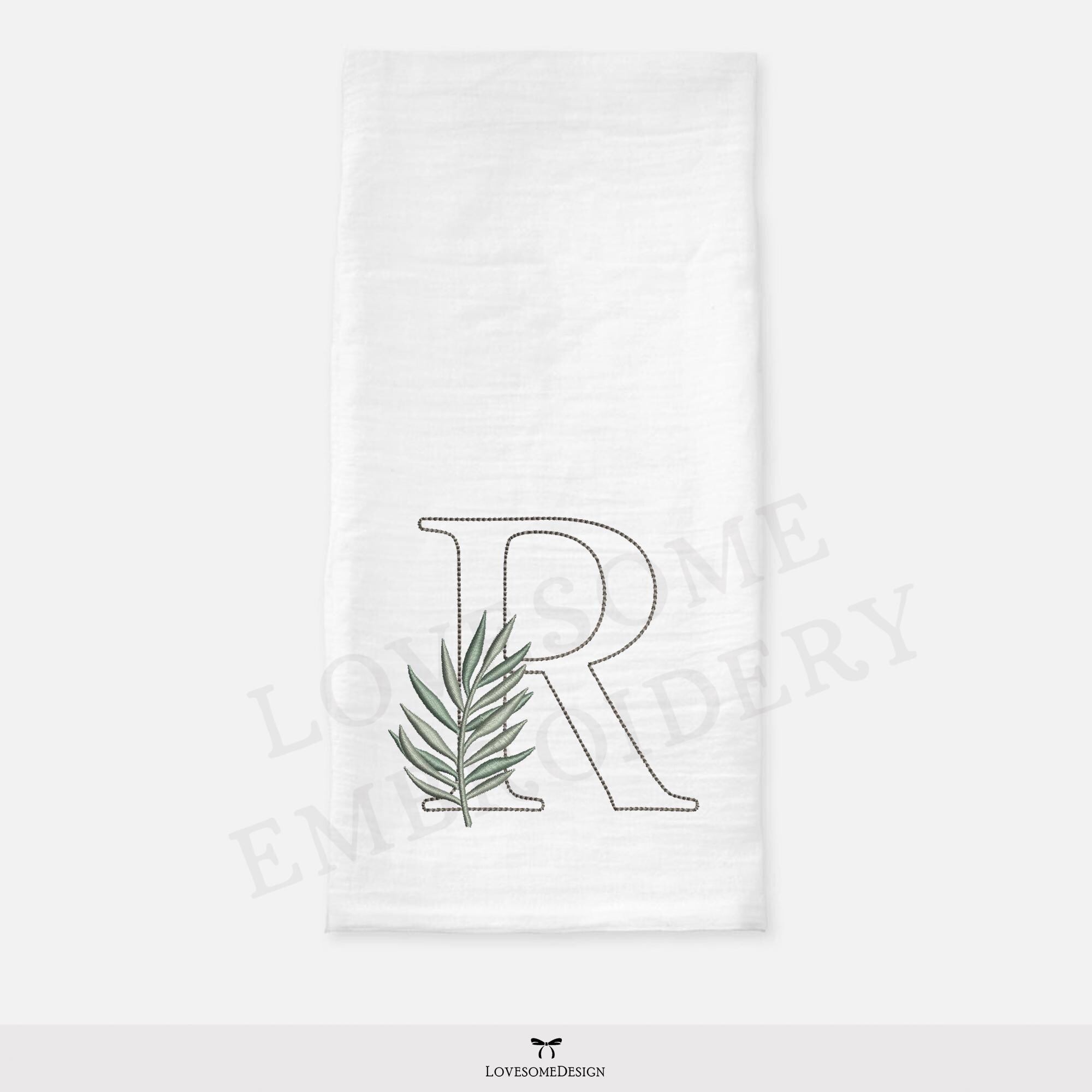 Palm Leaf Outline Monogram 4inch A-Z Machine Embroidery BX Font Tropical Boho Summer Alphabet Embroidery Files | Lovesome Design