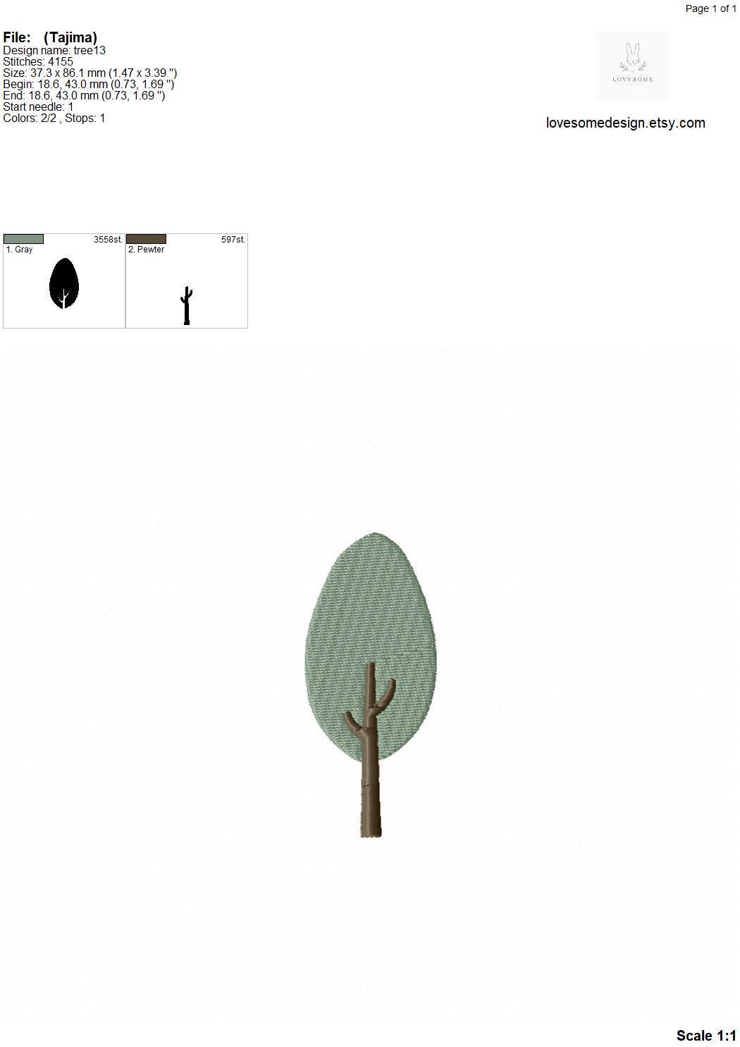 Cute, minimalistic, simple tree woodland embroidery design file in three sizes appr. in 3inch, 3.5inch and 4inch size.