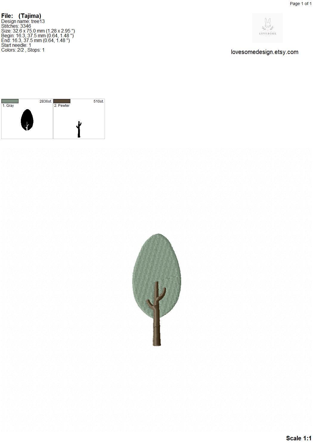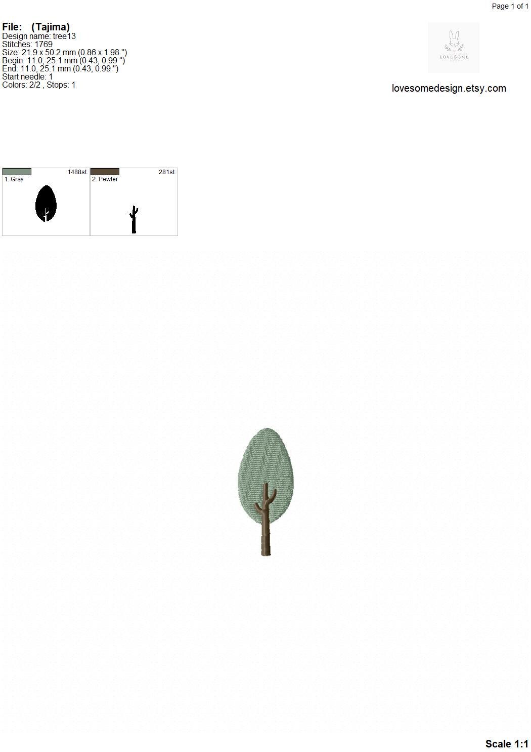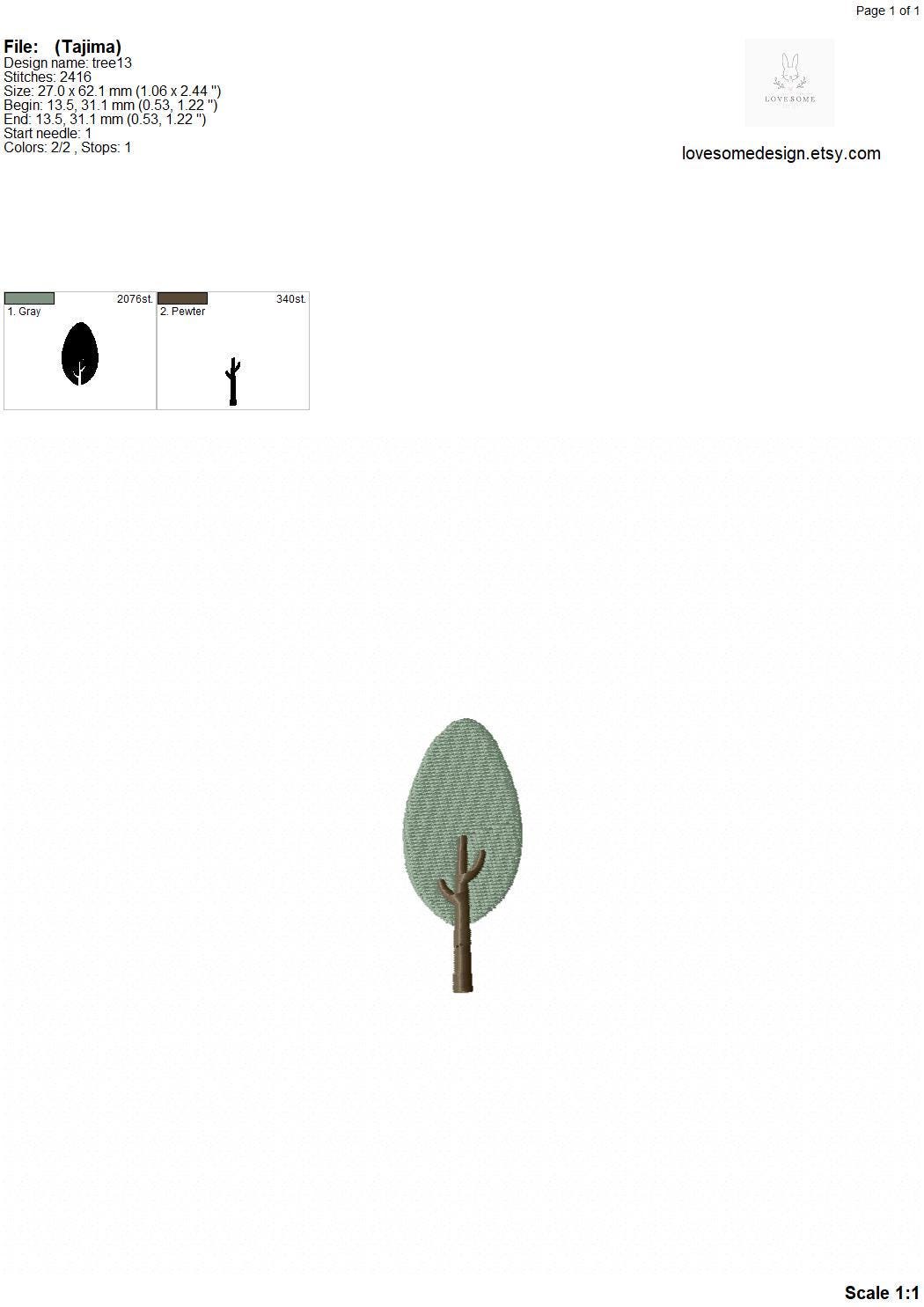 Simple Tree Mini Multisize Embroidery Design in 2inch 2.5inch 3inch, Minimalistic Tree Woodland Machine Embroidery Files | Lovesome Design