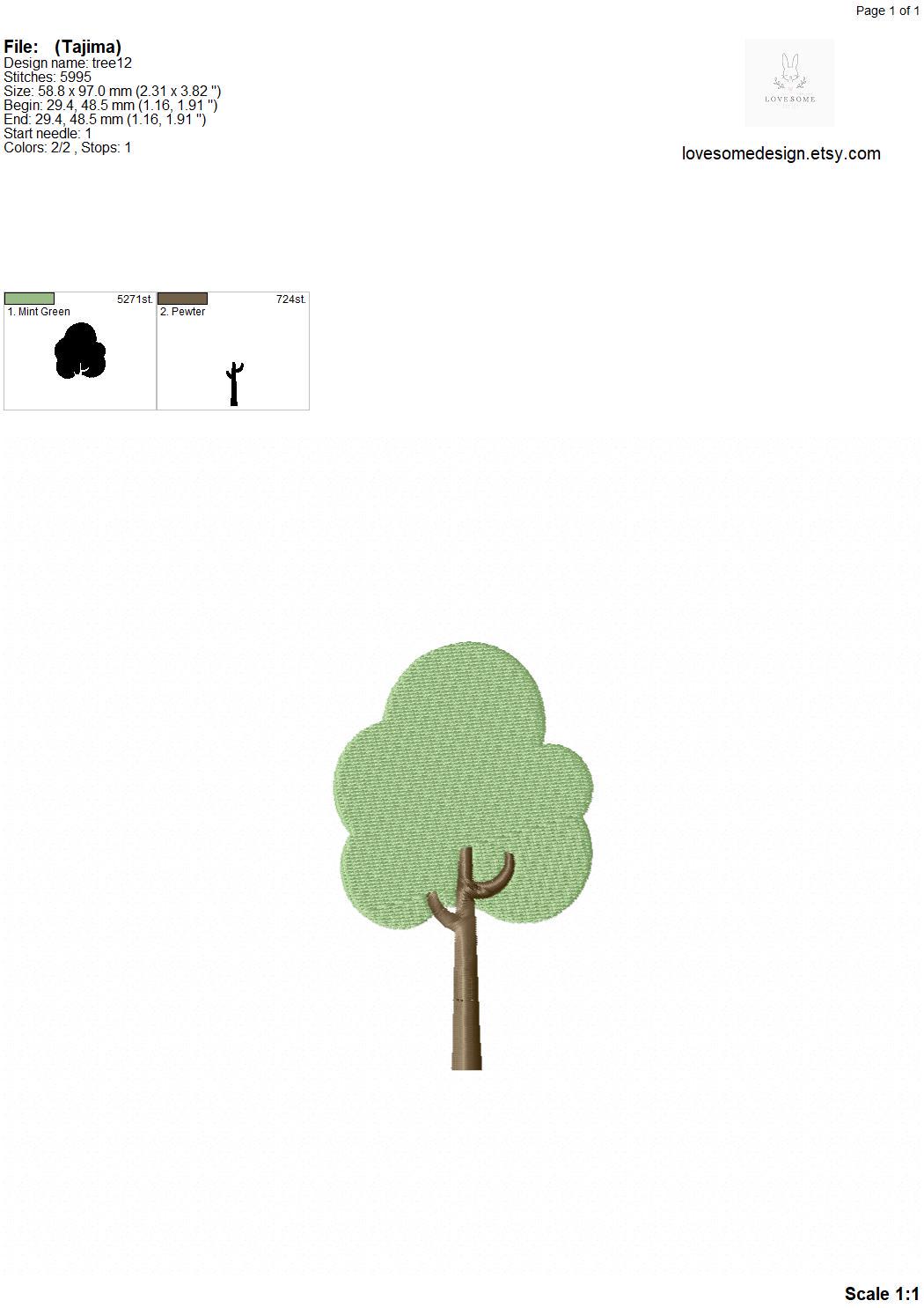 Cute Tree Multisize Embroidery Design in 3inch 3.5inch 4inch, Cute Minimalistic Tree Woodland Machine Embroidery Files | Lovesome Design