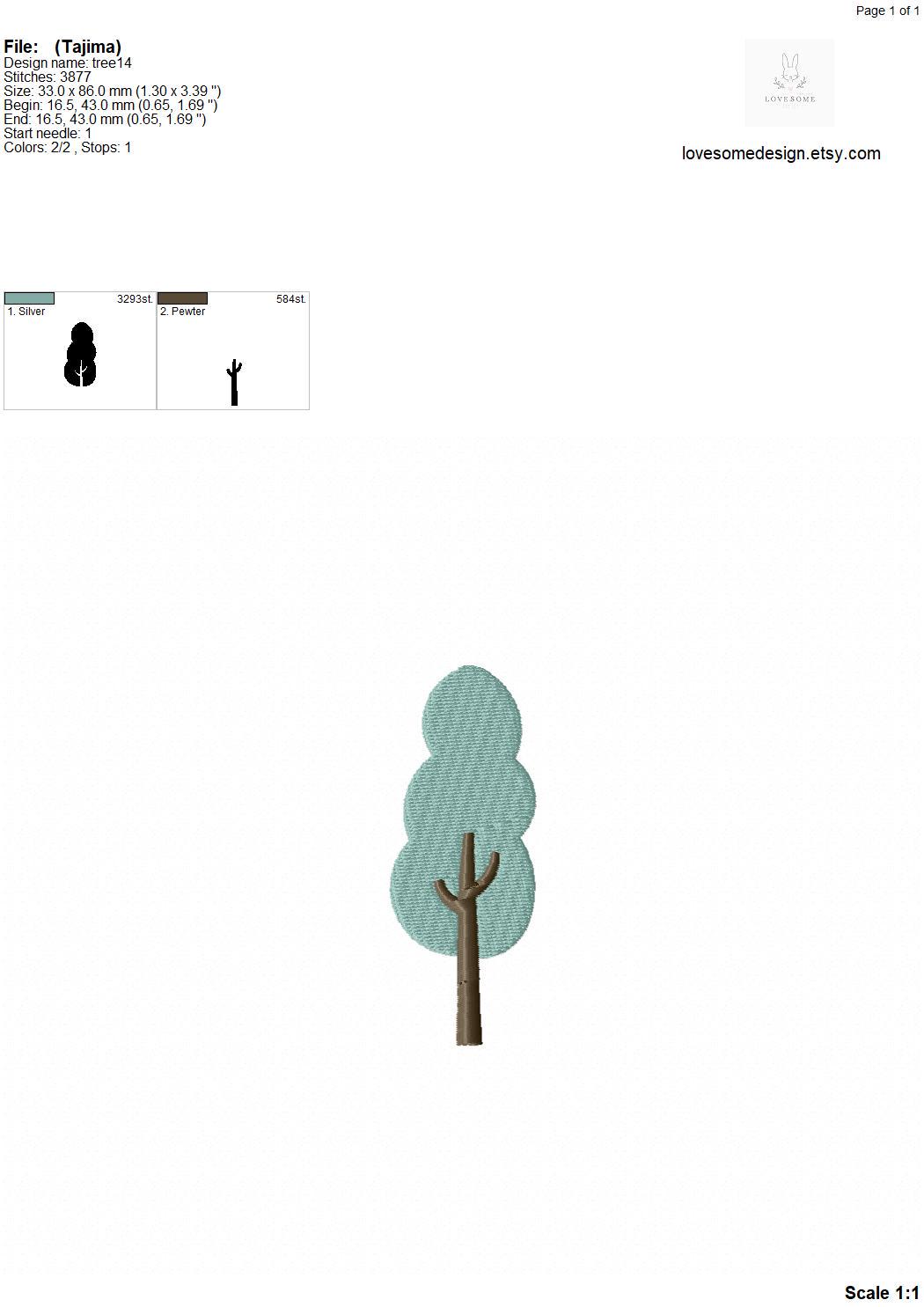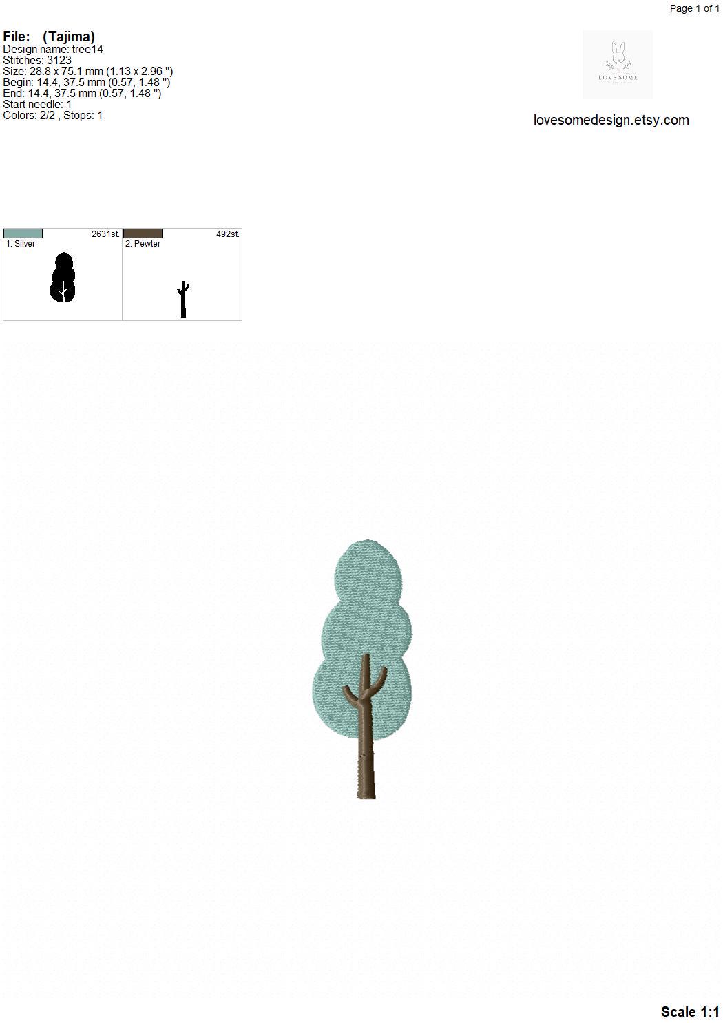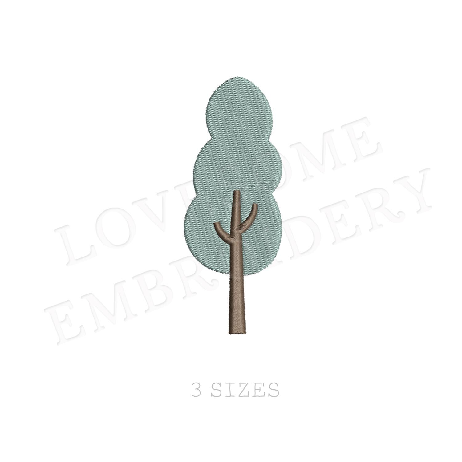 Cute, minimalistic spruce tree woodland embroidery design file in three sizes appr. in 3inch, 3.5inch and 4inch size.