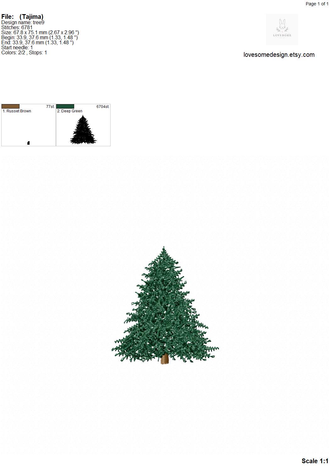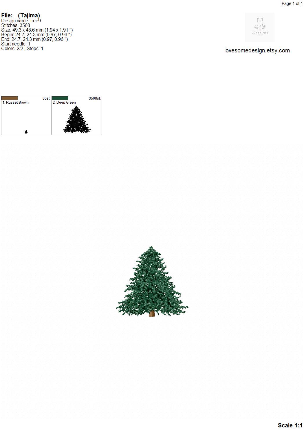 Pine Tree Mini Multisize Embroidery Design in 2inch 2.5inch 3inch, Pine Tree Winter Machine Embroidery File | Lovesome Design