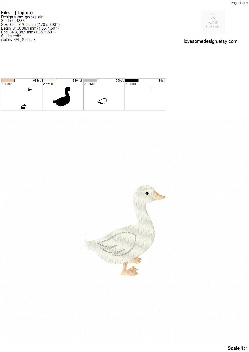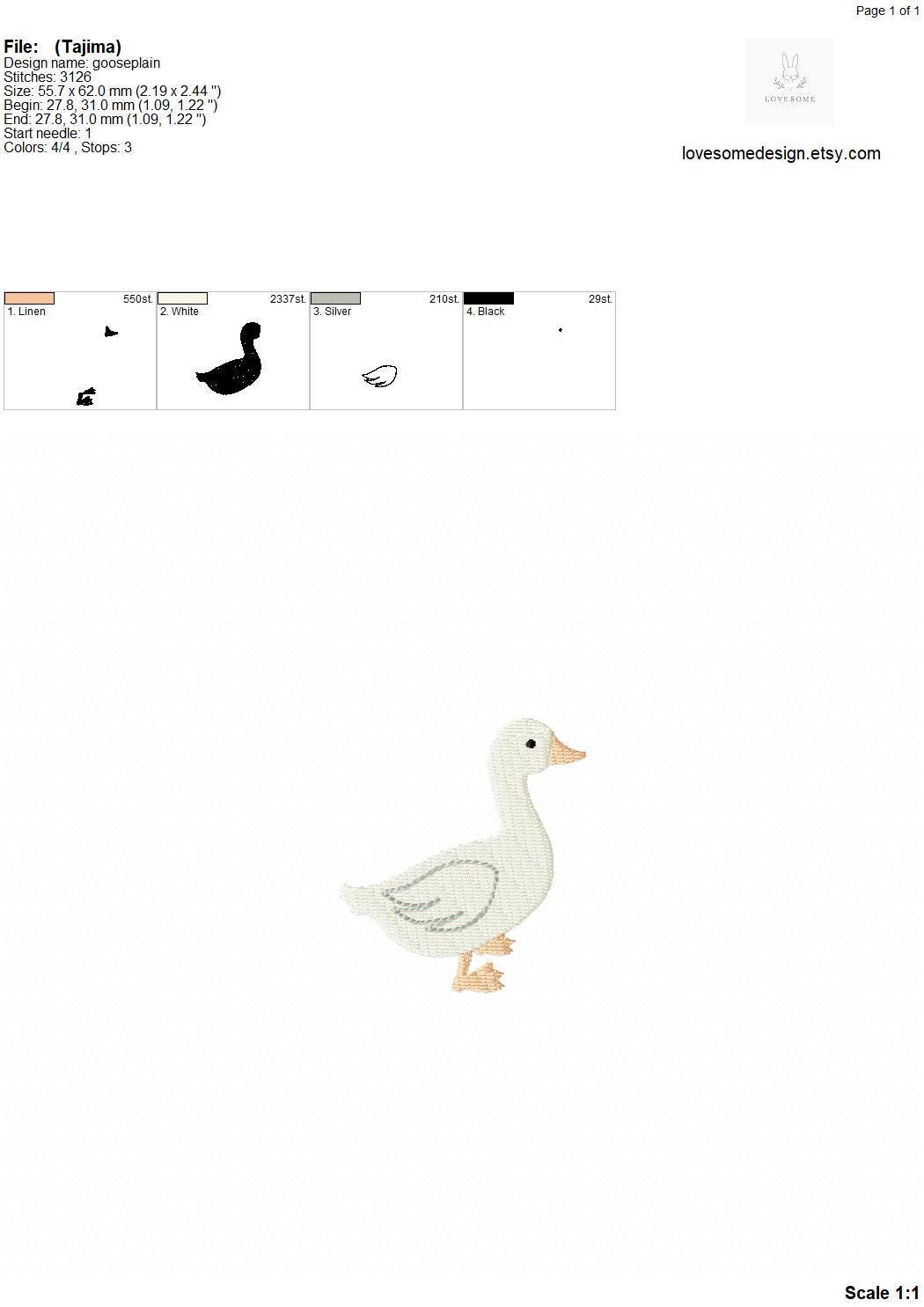 This listing includes one cute silly goose design for machine embroidery in three mini sizes, each appr. in 2inch, 2.5inch and 3inch size for embroidery hoops in different sizes.