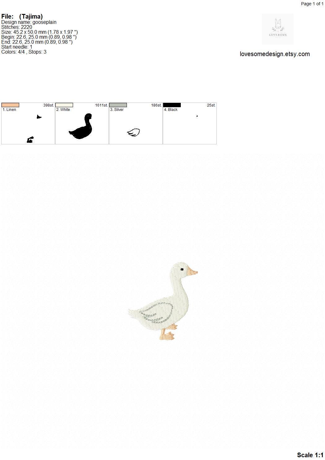 Cute Silly Goose Right Mini Three Sizes Machine Embroidery Design, Lovely Goose Multiple Size Embroidery File | Lovesome Design