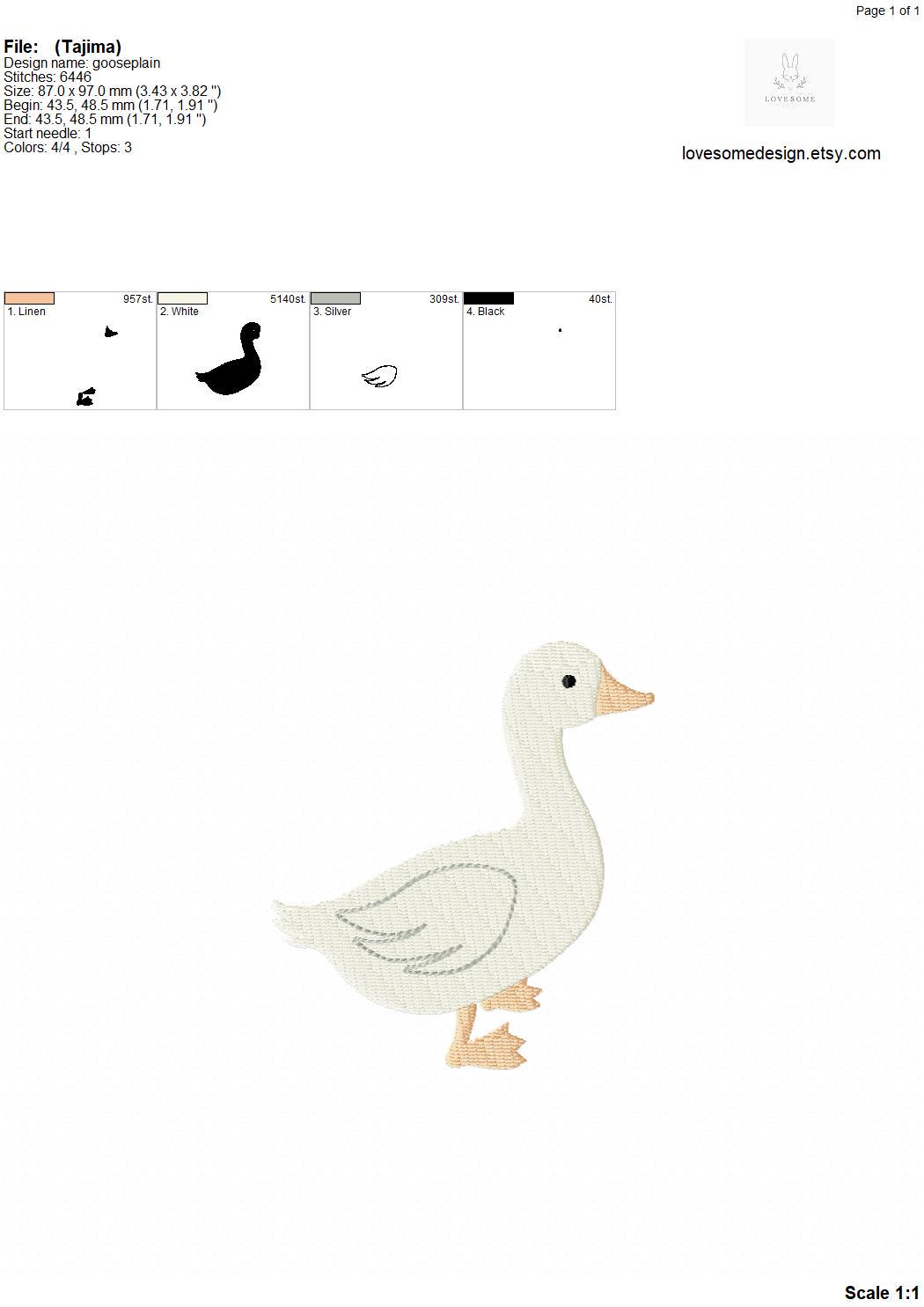Cute Silly Goose Right Big Three Sizes Machine Embroidery Design, Lovely Goose Multiple Size Embroidery File | Lovesome Design