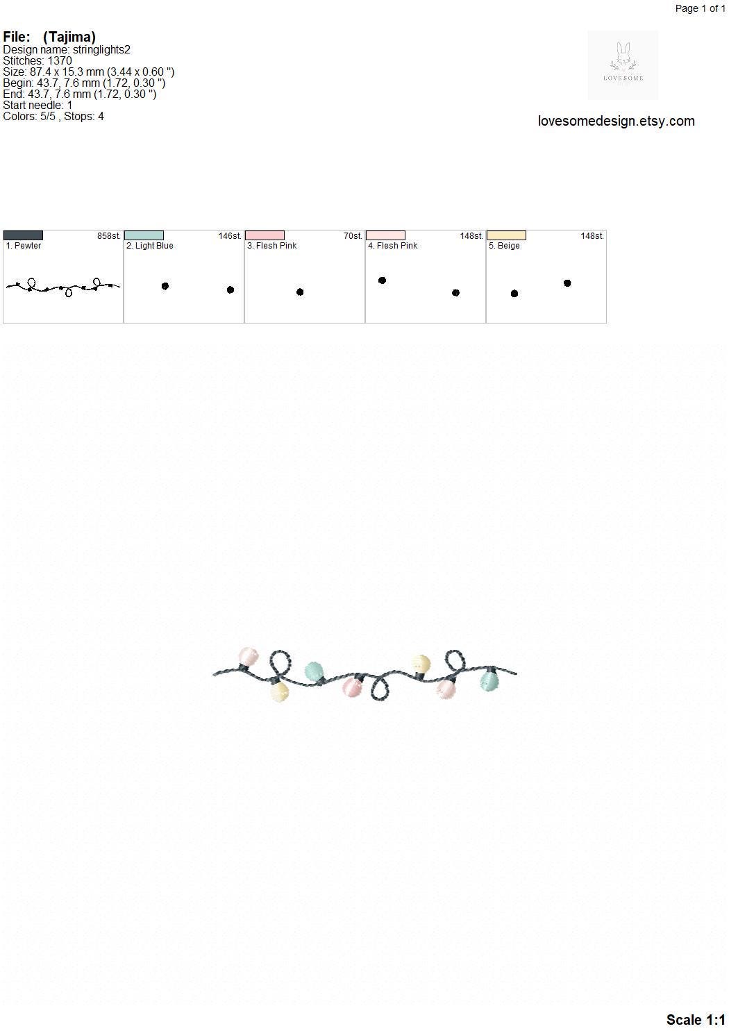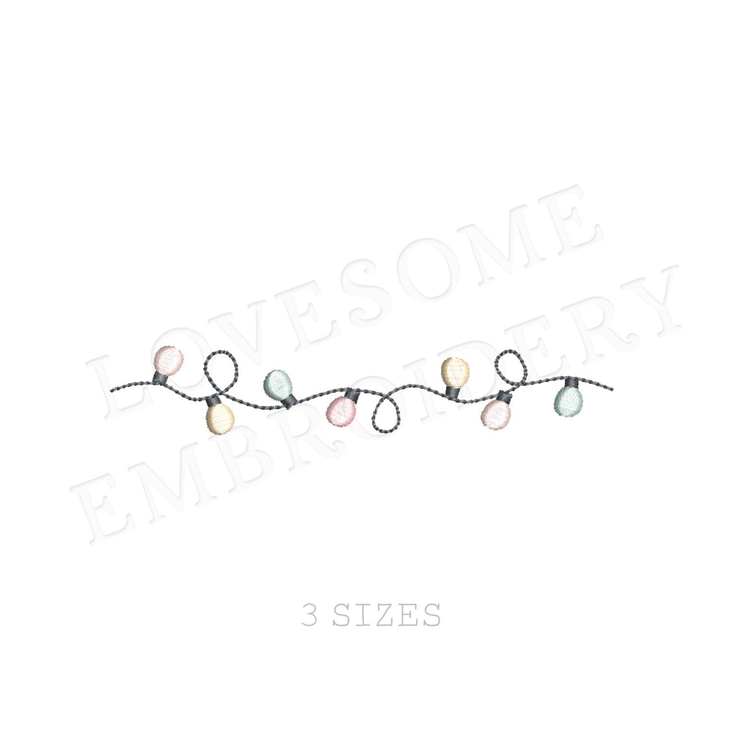 String Lights Three Mini Sizes Machine Embroidery Design Digital Download | Lovesome Design