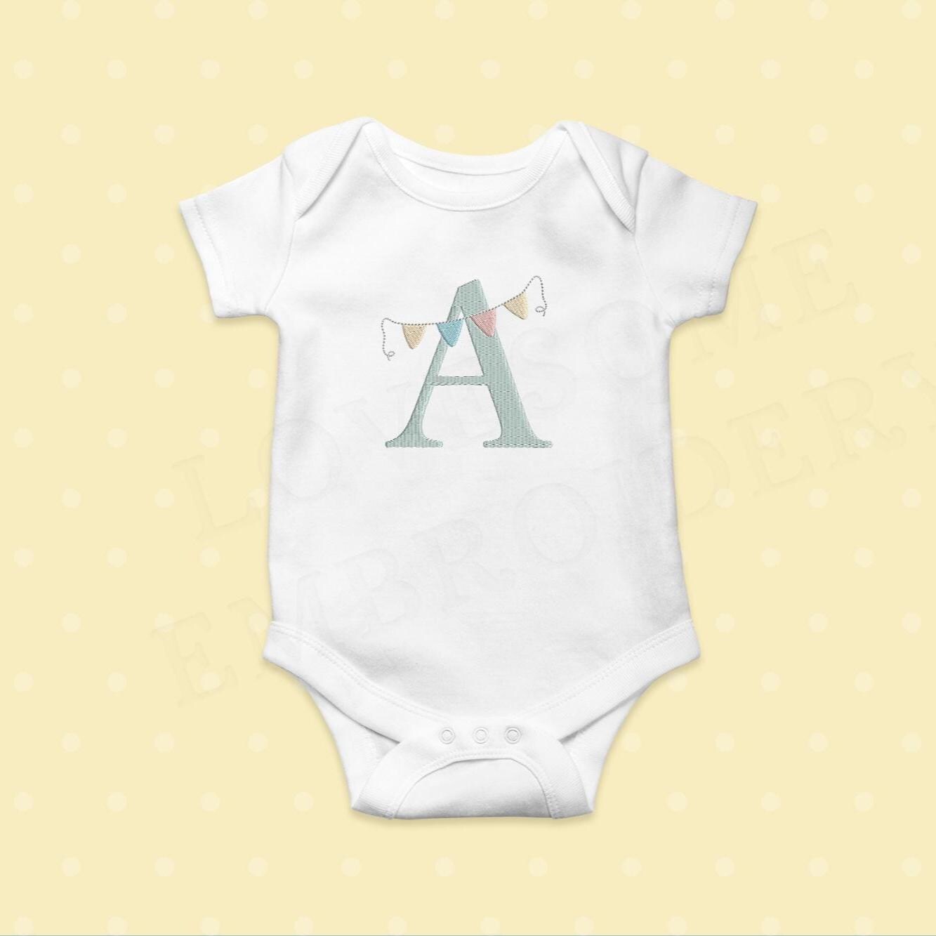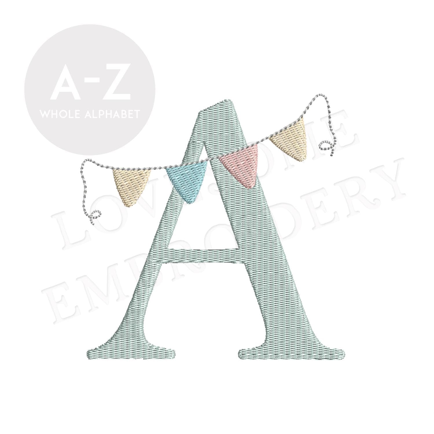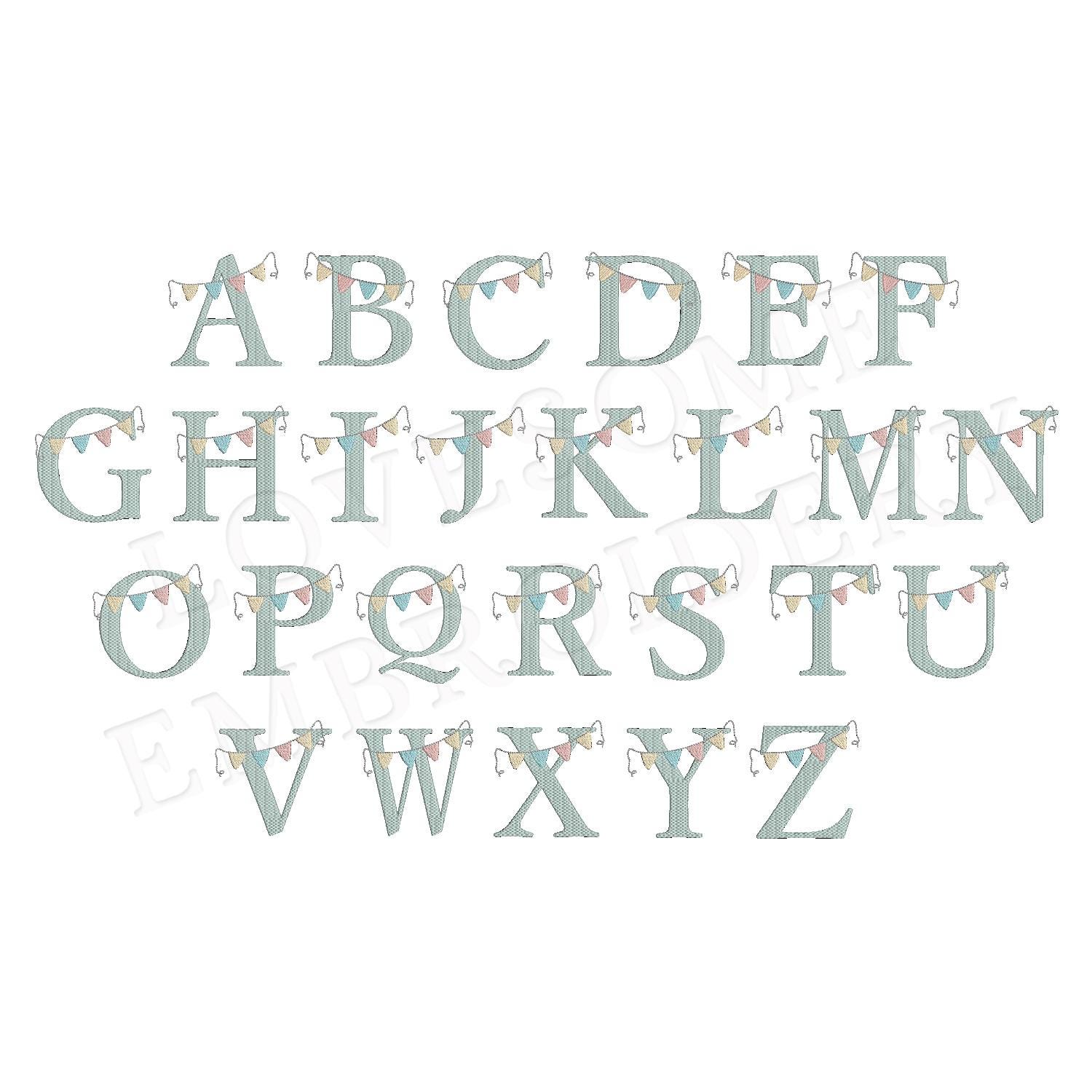 Bunting Alphabet 4inch A-Z Machine Embroidery Font Digital Download | Lovesome Design
