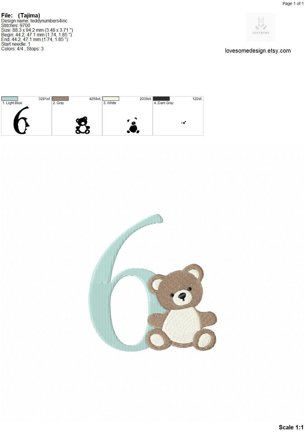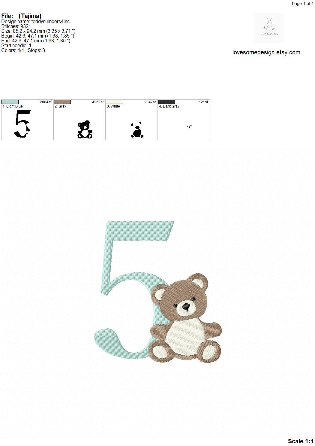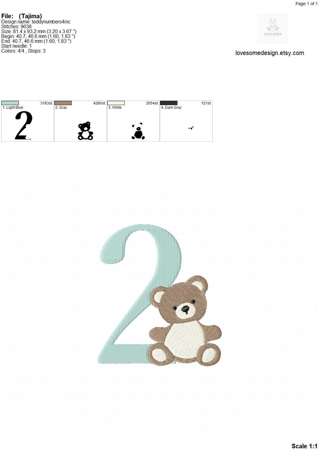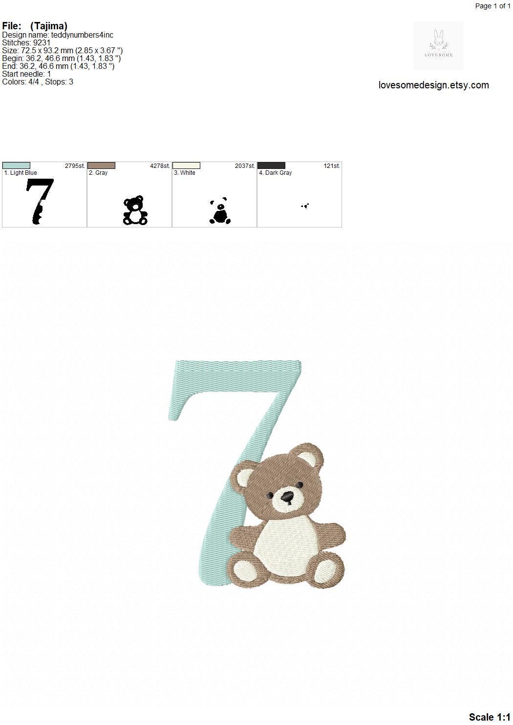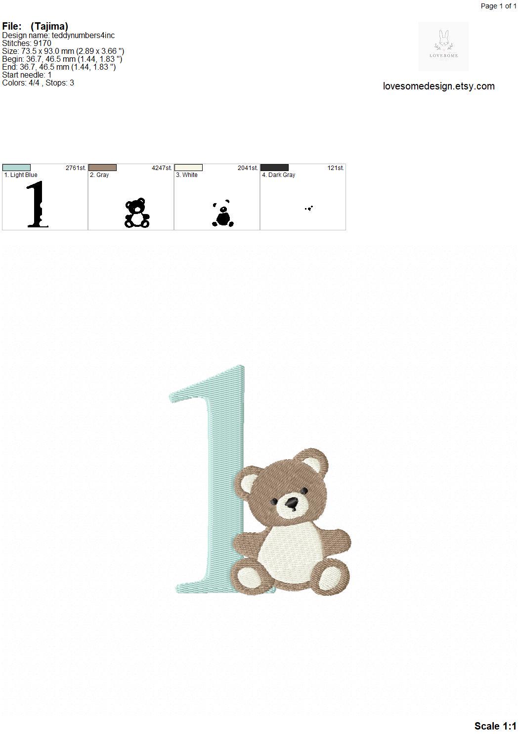 This listing features a machine embroidery numbers set which includes embroidery files of ten numbers (0-9) with cute teddy design in one size for 4x4 hoops for machine embroidery. (For the whole set, pls see the listing images.)
