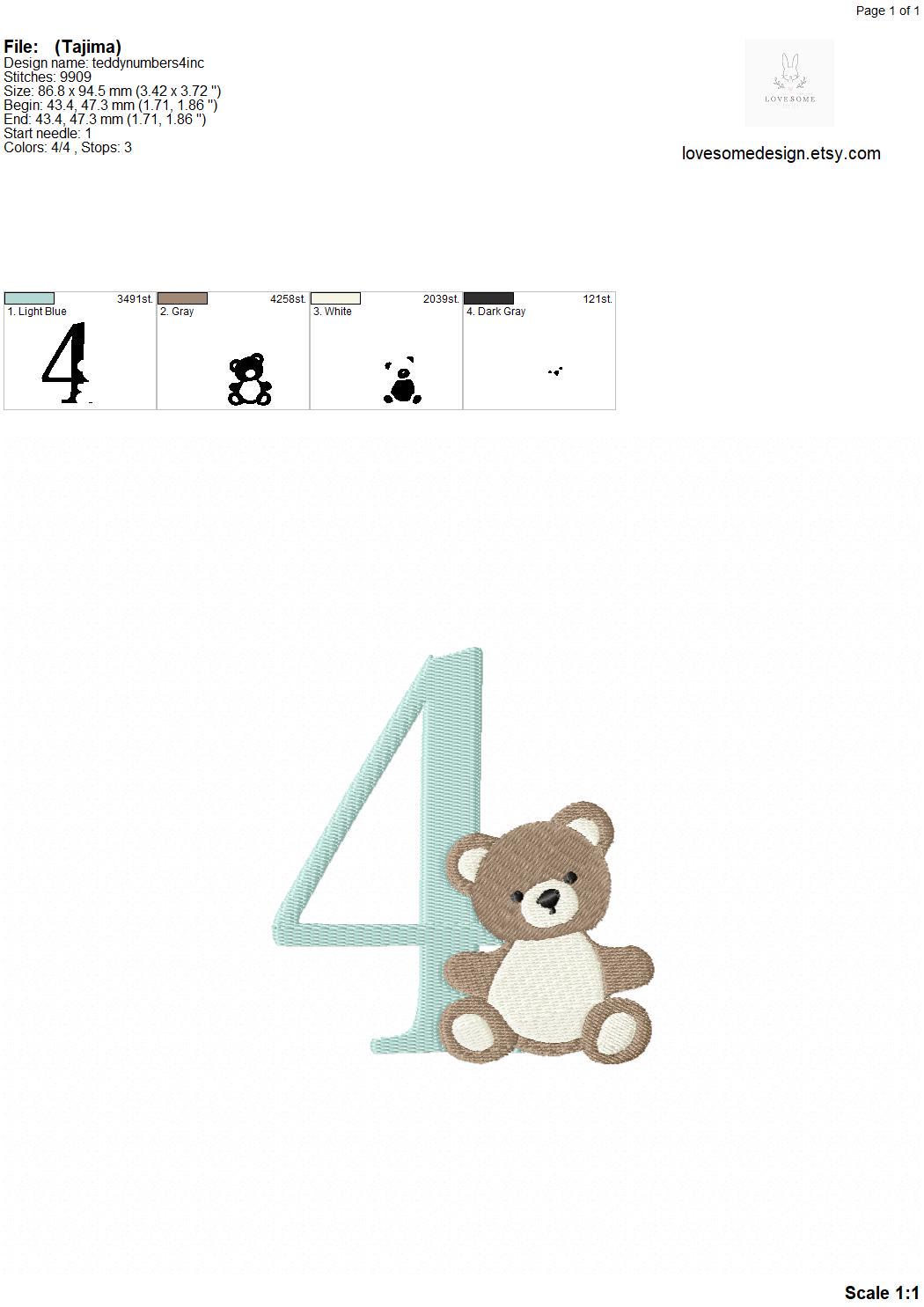 Cute Teddy Numbers 4inch 0-9 Machine Embroidery Birthday Teddy Bear Numbers Digital Download | Lovesome Design