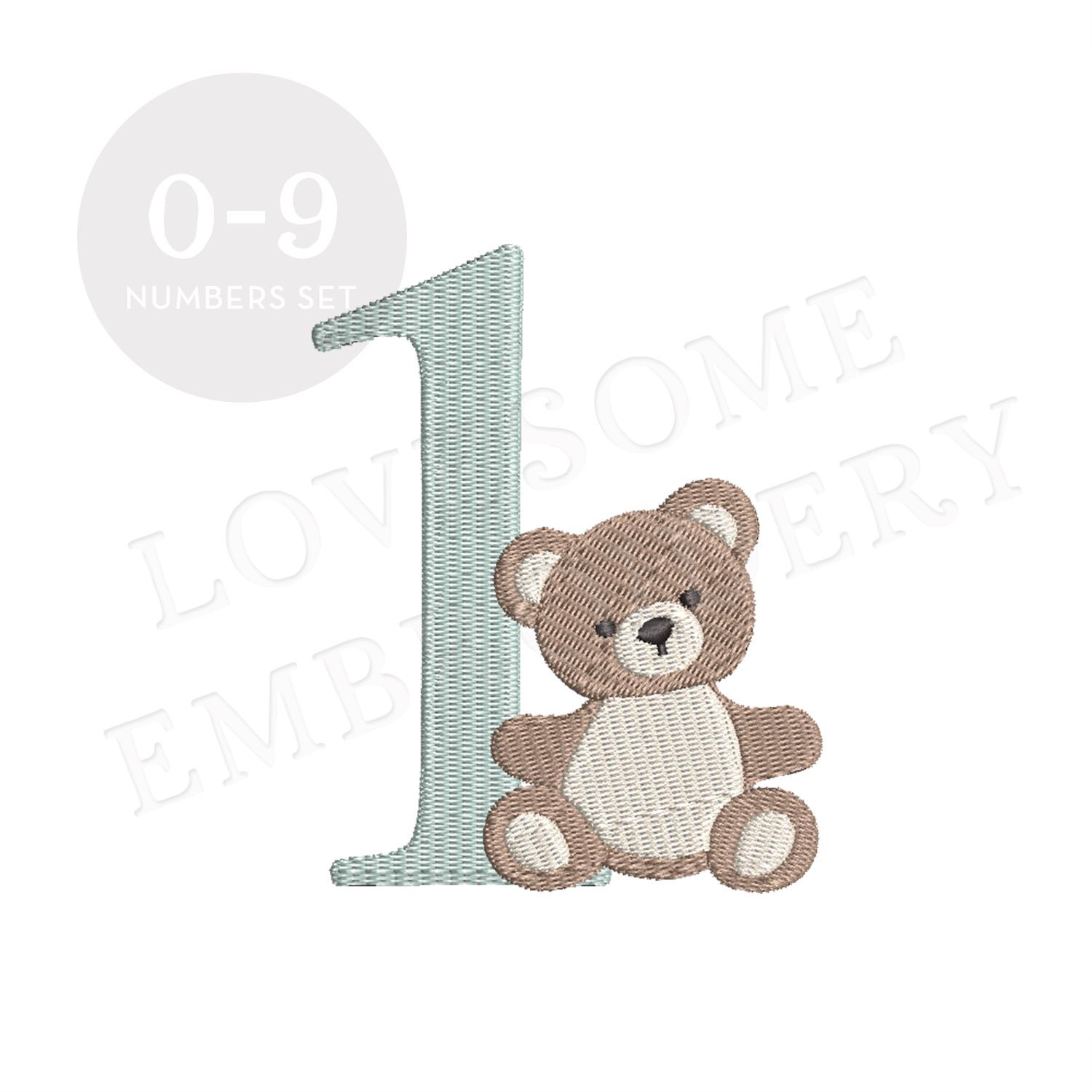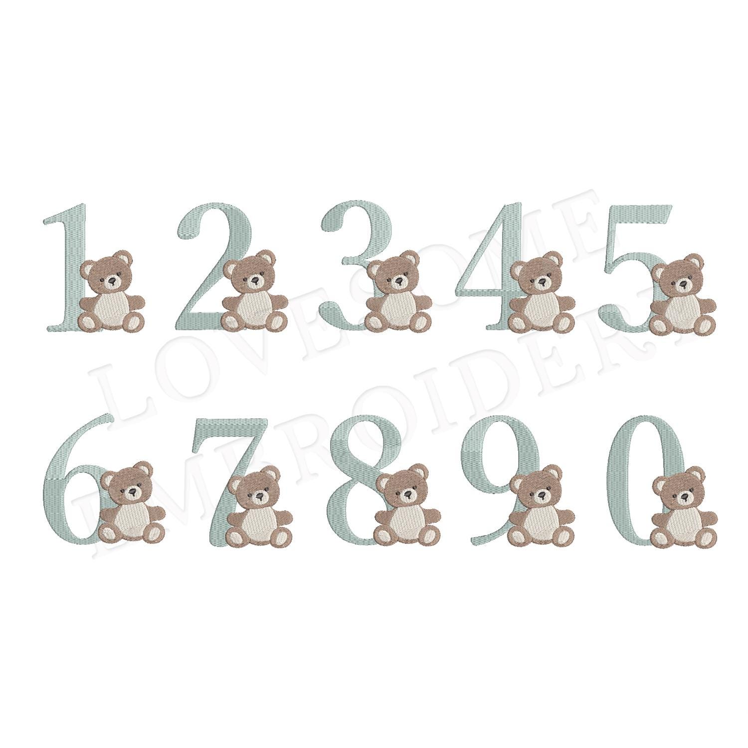Cute Teddy Numbers 5inch 0-9 Machine Embroidery Birthday Teddy Bear Numbers Digital Download | Lovesome Design