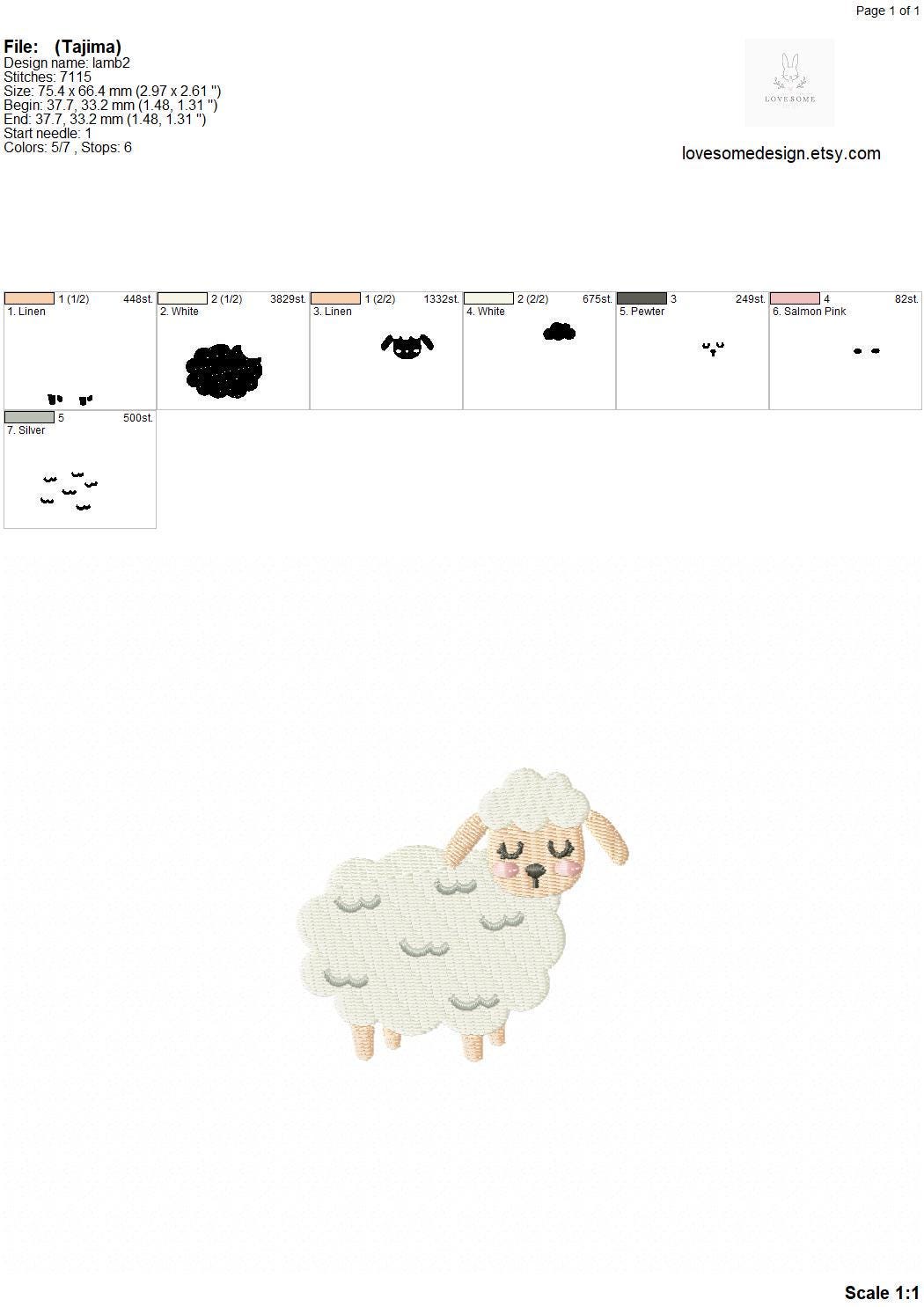 This listing includes one cute lamb design for machine embroidery in two sizes, each appr. in 3inch and 3.5inch size for embroidery hoops in different sizes.